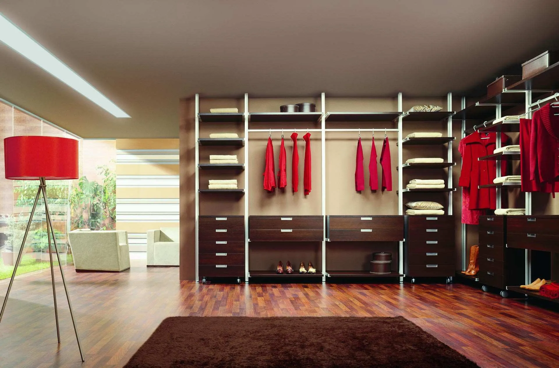 - Правильный выбор шкафов способен практически полностью решить проблему недостатка места в квартире. Встраиваемые системы высотой от пола до потолка позволяют эффективно задействовать каждый сантиметр пространства комнаты.