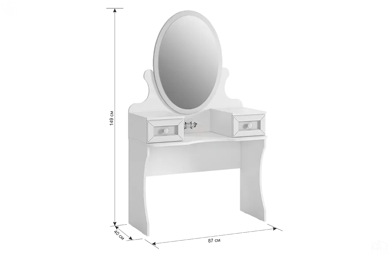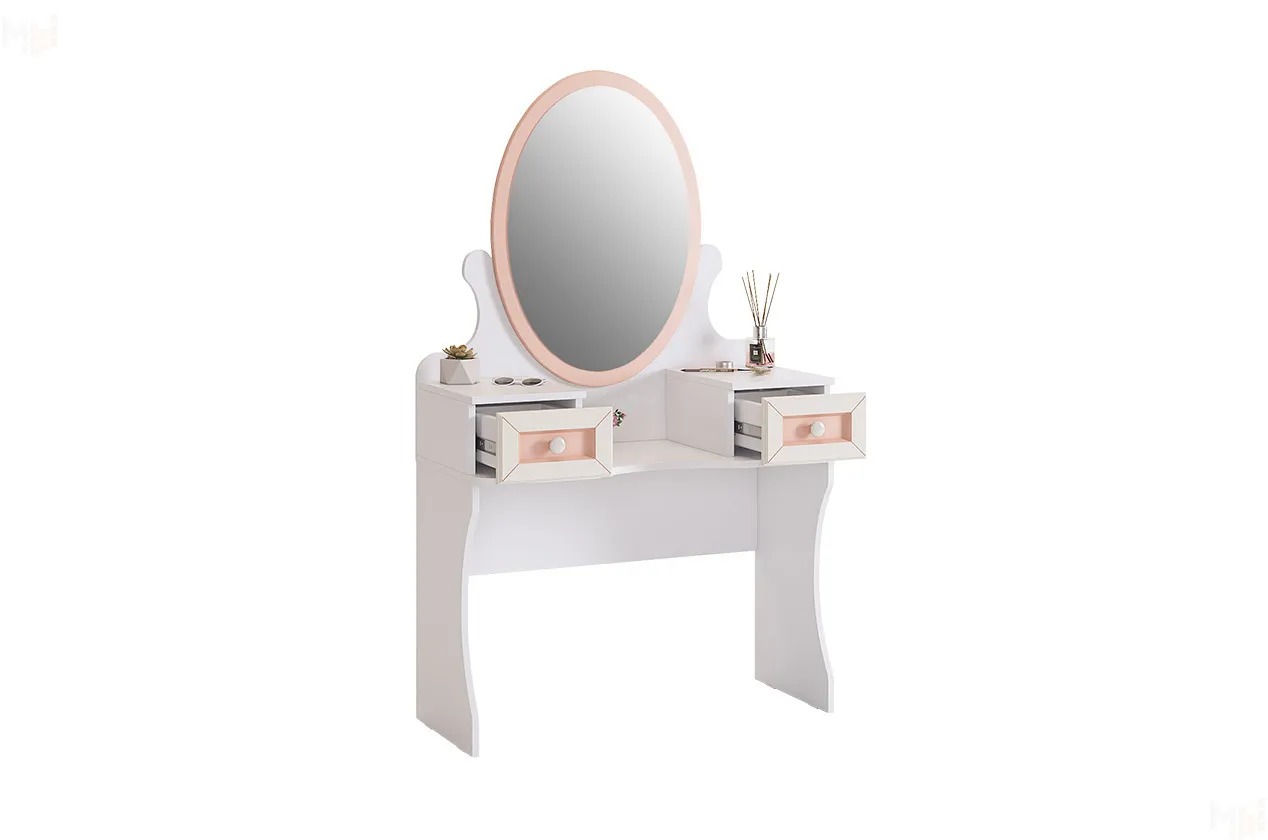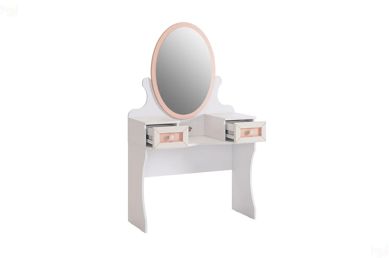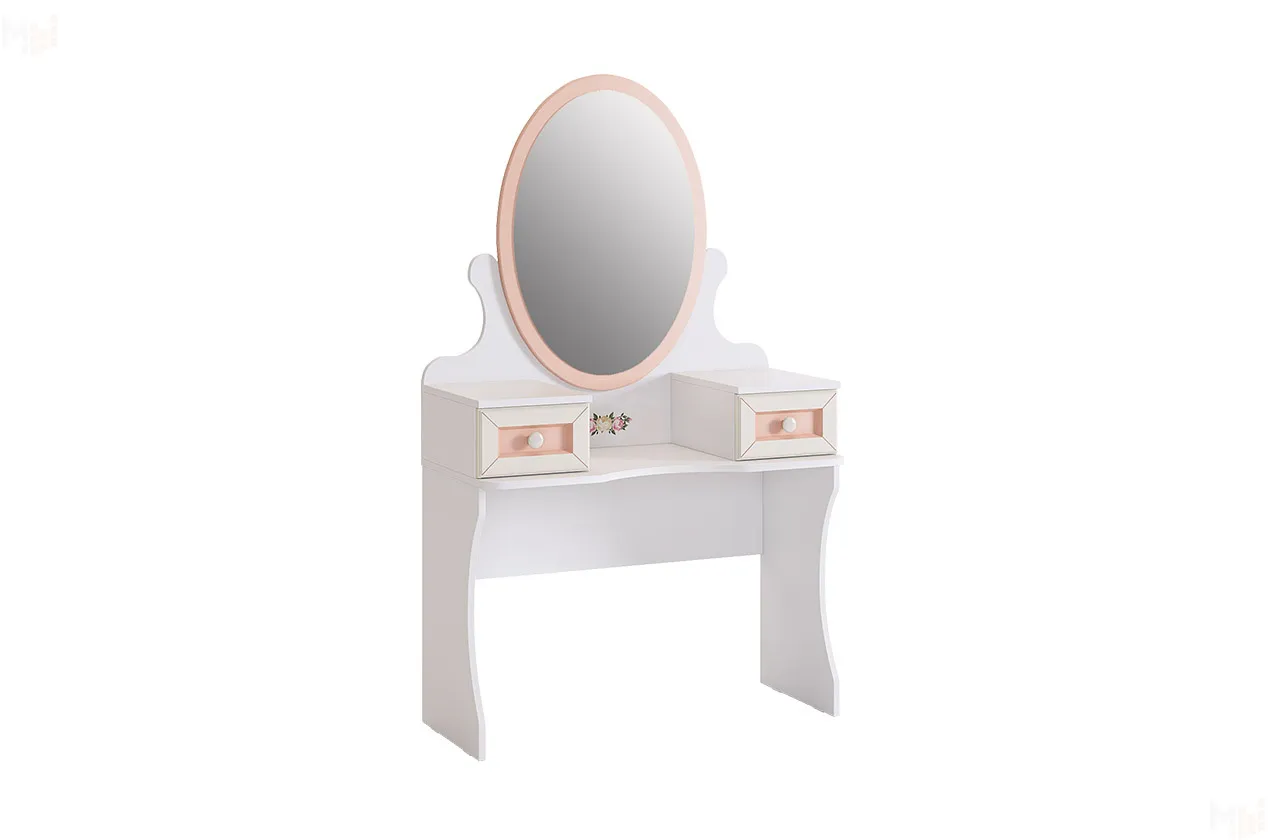 Трюмо из серии «Алиса» для юной красавицы. Выполнено в сочетании крашеного МДФ цвета "крем" с розовой патиной. В трюмо есть большое зеркало и выдвижные ящики для украшений и косметики. «Алиса» - личный уголок Франции!