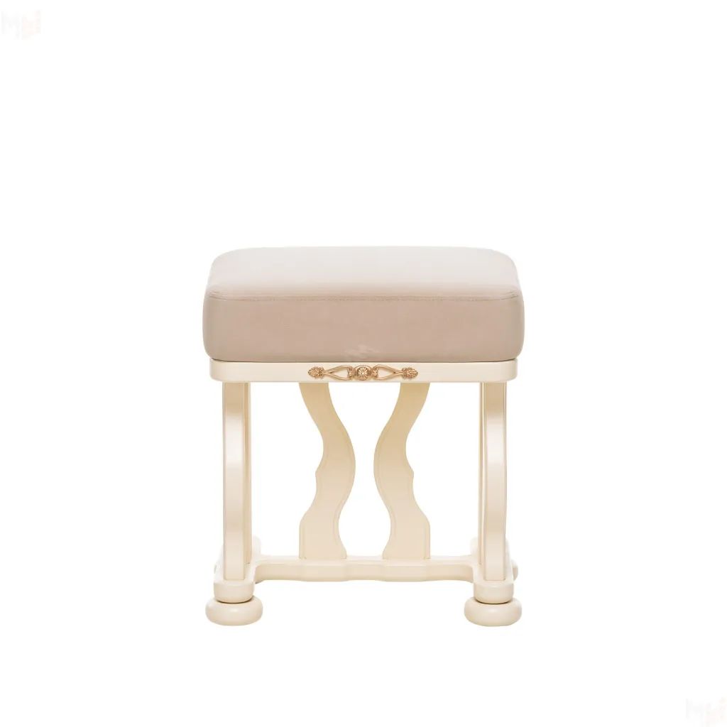 Банкетка с мягким сидением и изогнутыми опорами необычной формы выполнена из массива дерева. Сиденье обтянуто мебельной тканью высокого качества. Надежные опоры банкетки придают ей устойчивость. Банкетка станет отличным дополнением к туалетному столику «Джульетта».