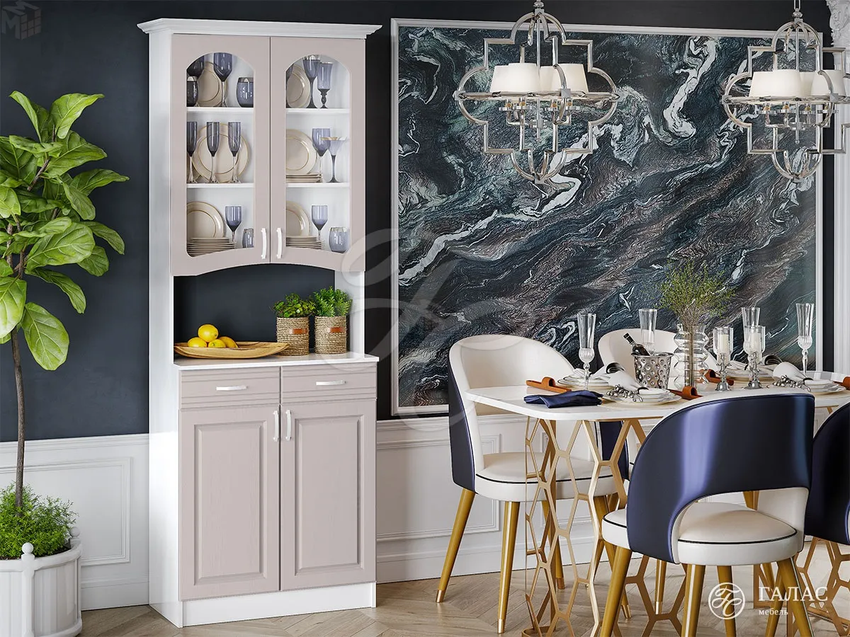 Буфет "Констанция" – идеальный вариант для классической кухни или гостиной. Модель имеет элегантный дизайн и выполняется в нежных расцветках, особую легкость и воздушность ей придают стеклянные фасады. Верхний шкафчик буфета укомплектован широкими полочками, на которых удобно размещать различную посуду. В нижней части конструкции предусмотрены выдвижные ящики и вместительная тумба, где можно скрыть от посторонних взглядов все лишние вещи. Дополнительную функциональность модели придает удобная столешница, которая может использоваться в качестве рабочей поверхности или играть роль подставки для декора. Буфет оформлен декоративным карнизом.