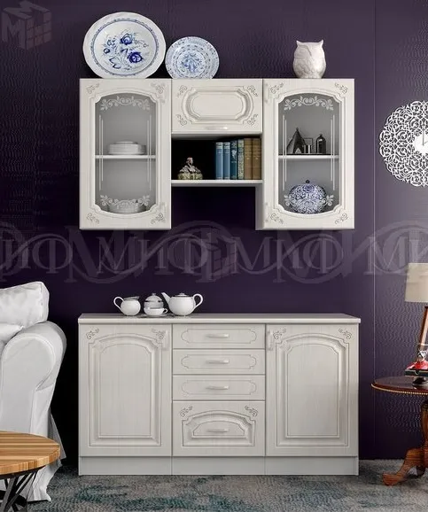 Буфет Лиза-1 наиболее гармонично впишется в гостиную, оформленную в стиле Прованс. Рисунки на стеклах, фурнитура и узоры на дверцах указывают на задумку дизайнеров и делают этот предмет мебели особенно привлекательным для тех, кому близок данный стиль. В выдвижных ящиках буфета и за дверными створками с легкостью разместится множество предметов, в том числе красивая посуда, которой можно будет любоваться сквозь декорированное стекло. Практичность, красота и функциональность – вот основные достоинства этого замечательного буфета.