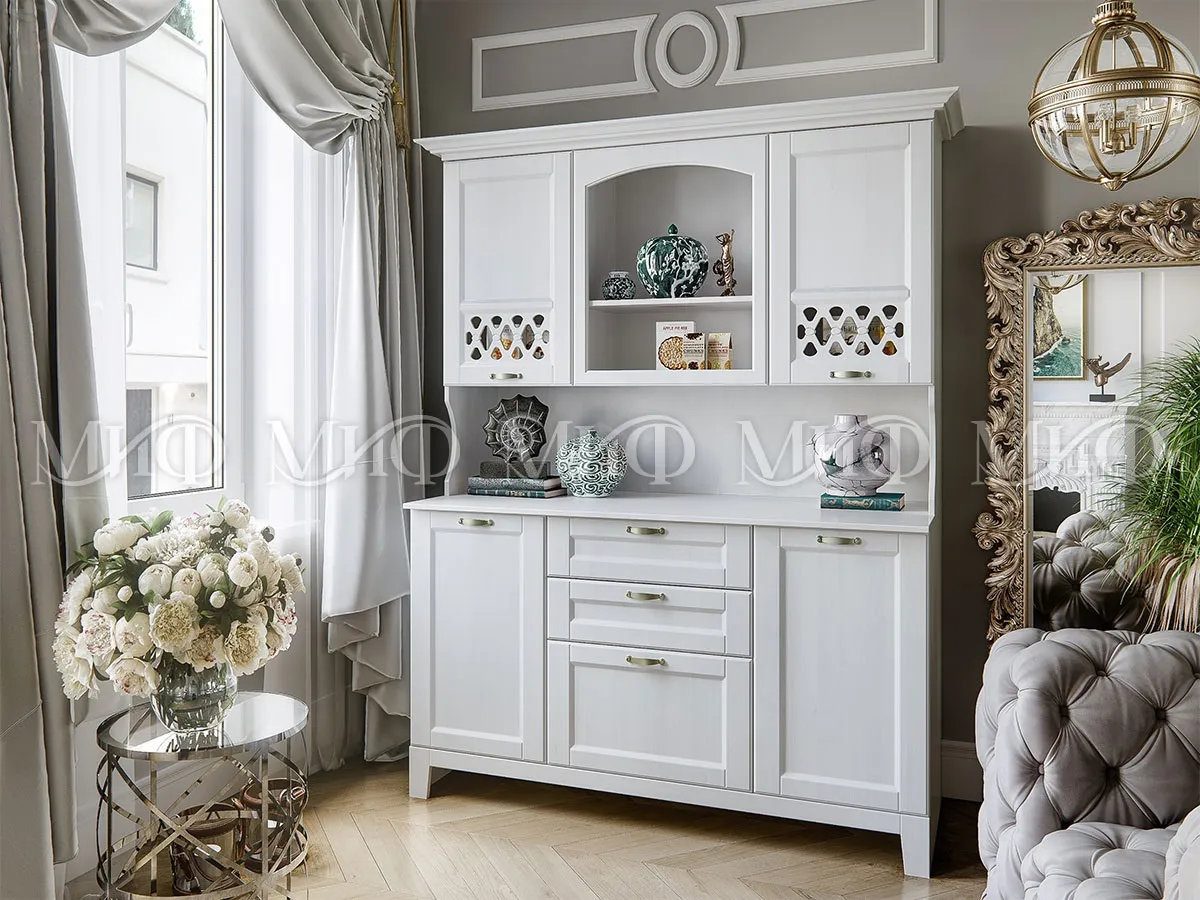 Большой и красивый буфет для кухни или дачи. Каркас выполнен из ЛДСП белый, фасады МДФ.