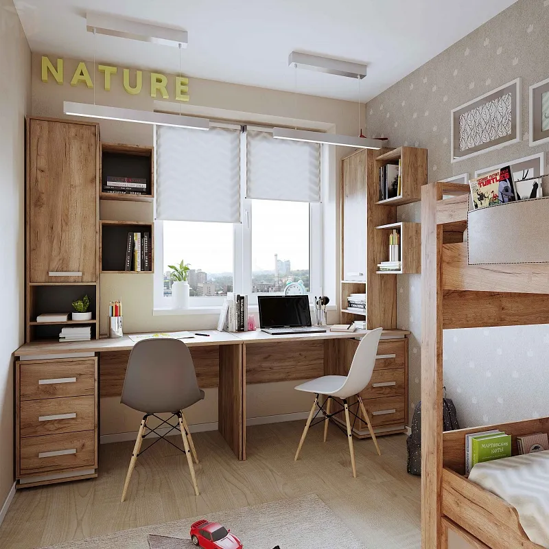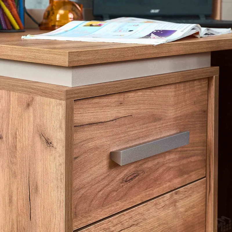 За счет просторной рабочей поверхности Nature 84 Cтол письменный одинаково удобен как для левши, так и для правши. Благодаря возможности левосторонней и правосторонней сборки стол можно собрать так, чтобы три выдвижных ящика на шариковых направляющих располагались с любой, удобной для ребенка, стороны. Столешница 22 мм и ударопрочная кромка ПВХ 2 мм повысят срок службы стола. Под столешницей - небольшая ниша со стороны ящиков. В нишу может поместиться планшет или журналы.