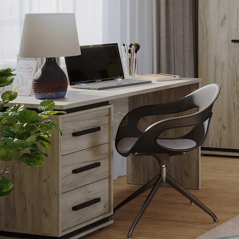 За счет просторной рабочей поверхности OSLO 84 Cтол письменный одинаково удобен как для левши, так и для правши. Благодаря возможности левосторонней и правосторонней сборки три выдвижных ящика на шариковых направляющих можно установить с любой удобной для вас стороны. Столешница 22 мм и ударопрочная кромка в 2 мм повысят срок службы стола. Под столешницей - небольшая ниша со стороны ящиков. В нишу спокойно может поместиться планшет или журнал.Выдвижные ящики на шариковых направляющих