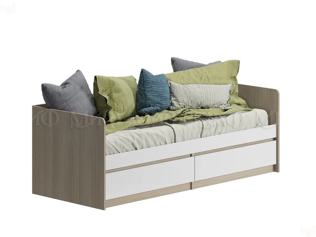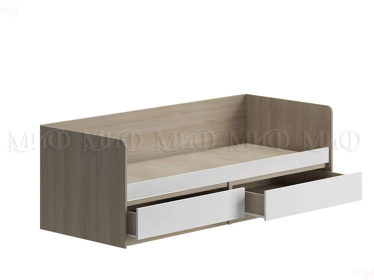 Кровать выполнена из ЛДСП сонома, фасады белый глянец 16 мм.