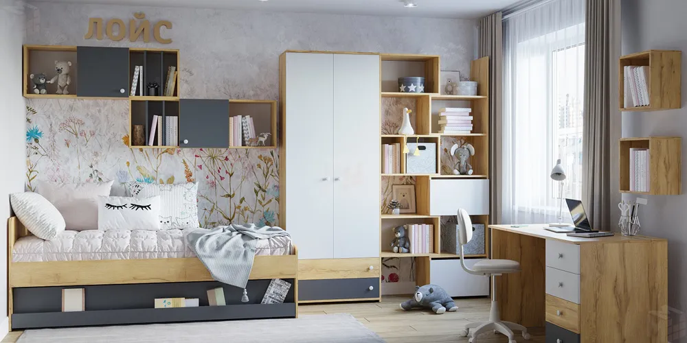 Стол письменный ЛОЙС 84Шкаф навесной ЛОЙС 88 2 штСтеллаж-трансформер ЛОЙС 95