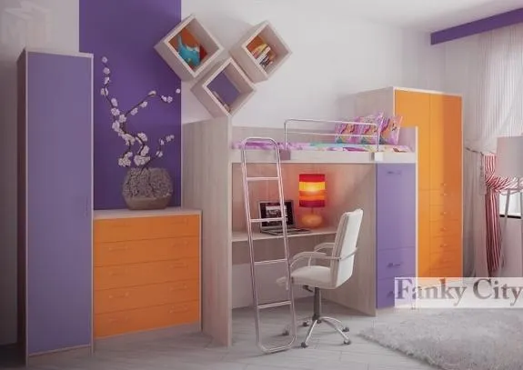Мебель Фанки Сити идеально подойдет как девочкам, так и мальчикам. Мебель выполнена в стиле минимализм, который сегодня особенно популярен среди итальянских дизайнеров. Изысканный цвет корпуса сосна Нордик наполняет пространство светом и стилем.