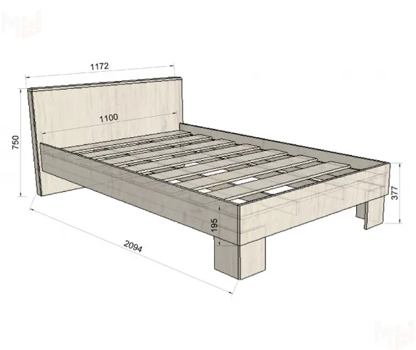 - Кровать ФТ-02. Матрас для кровати приобретается дополнительно. Размер спального мести 2000х1100 мм. Основание под матрас - ортопедические ламели. Размер: 2094х1172х750 мм.