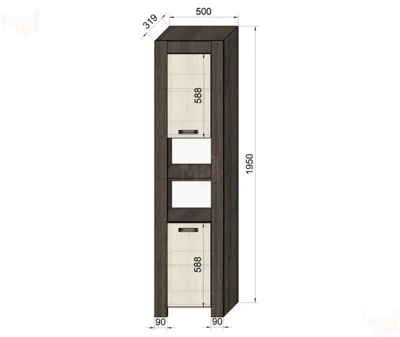 - Пенал ФТ-04. Внутреннее наполнение закрытых секция - полка посередине. Размер: 500х1950х319 мм.