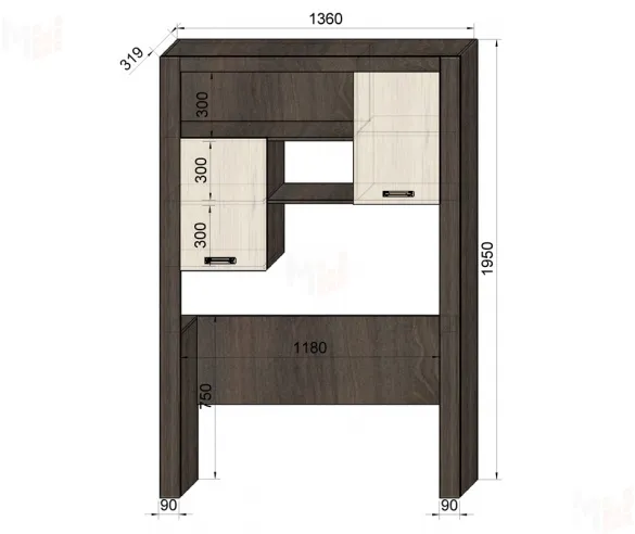 - Стеллаж-ниша ФТ-11 к столу. Размер: 1360х1950х319 мм.