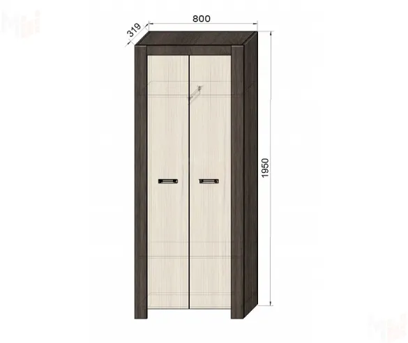- Двухдверный шкаф ФТ-05 с полкой и металлической штангой (располагается по глубине). Размер: 800х319х1950 мм.