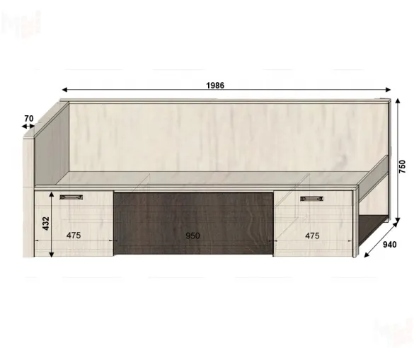 - Кровать ФТ-03. Очень удобная кровать с дополнительным местом для хранения и спальным местом 1900х800 мм. Размер: 1986х750х940 мм.