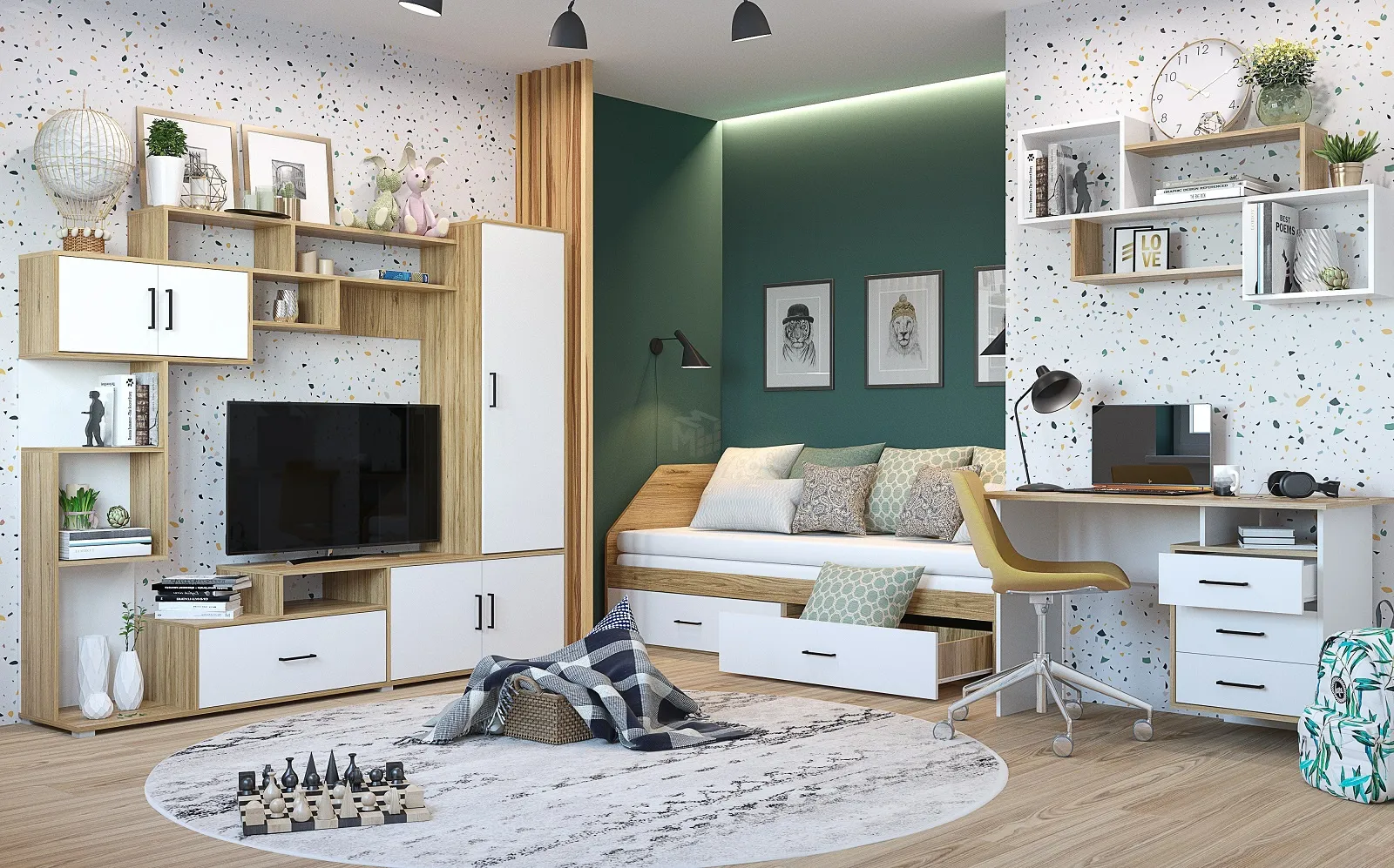 Корпус выполнен из ЛДСП Дуб золотой, фасады ЛДСП белый. -