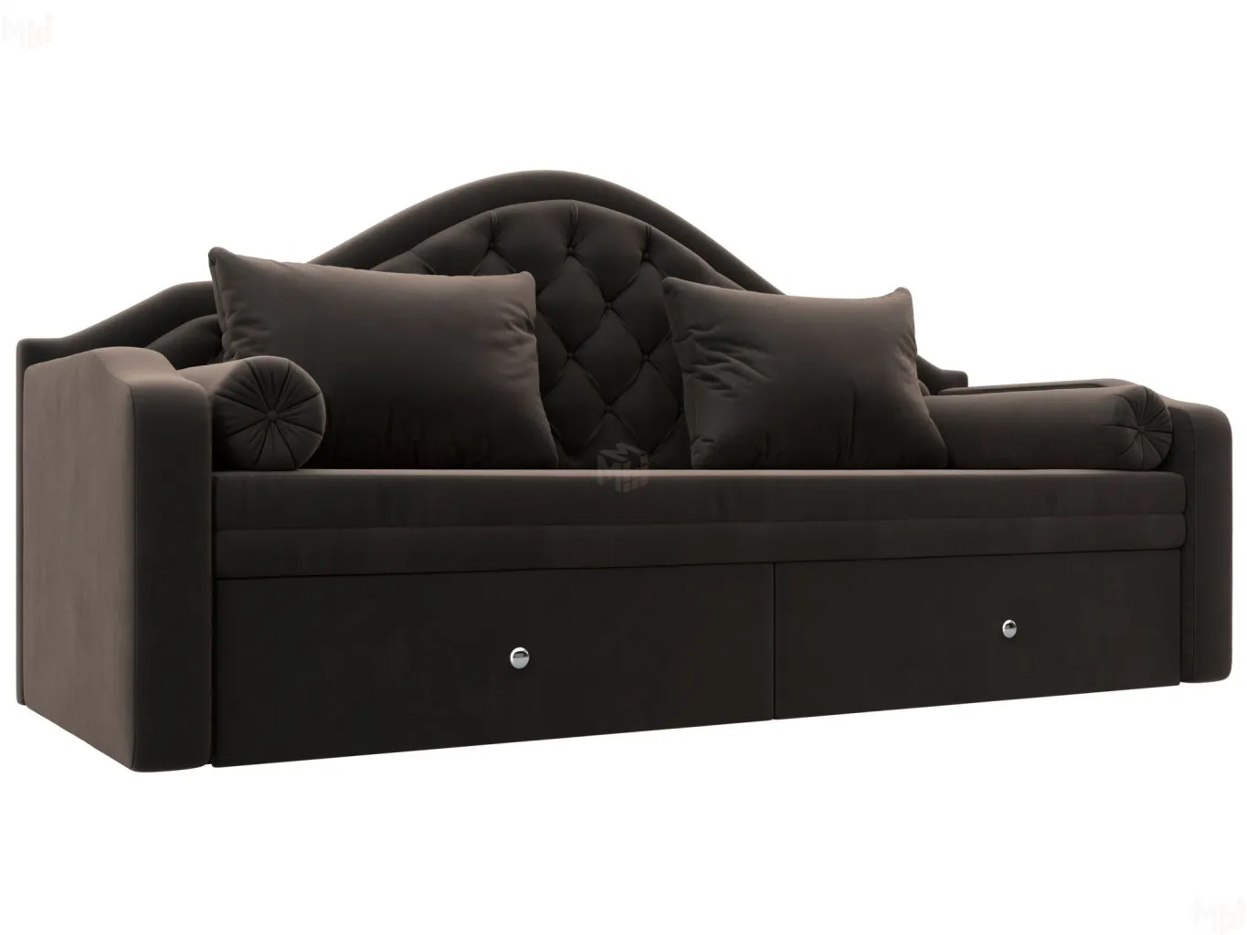 Сойер – прямой диван с выкатной системой трансформации, созданный в элегантном классическом дизайне. Модель дополняется двумя мягкими подушками и стильными валиками. В нижней части корпуса расположены 2 выдвижных ящика с хромированной фурнитурой. -