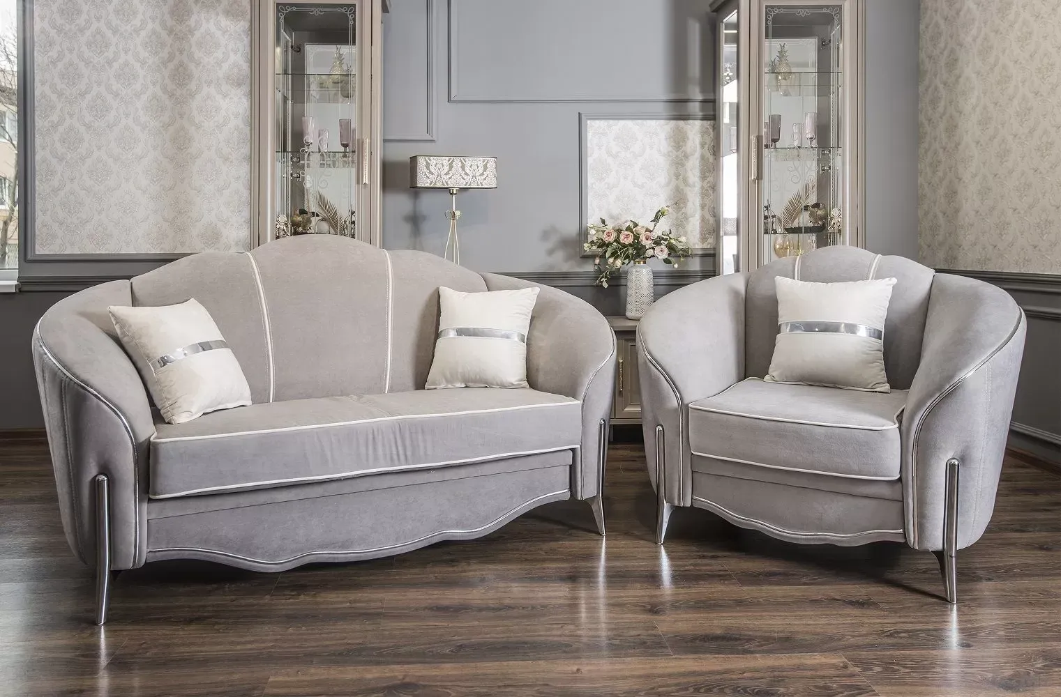 Диван Гравита 2х местный серый серебро без раскладного механизма