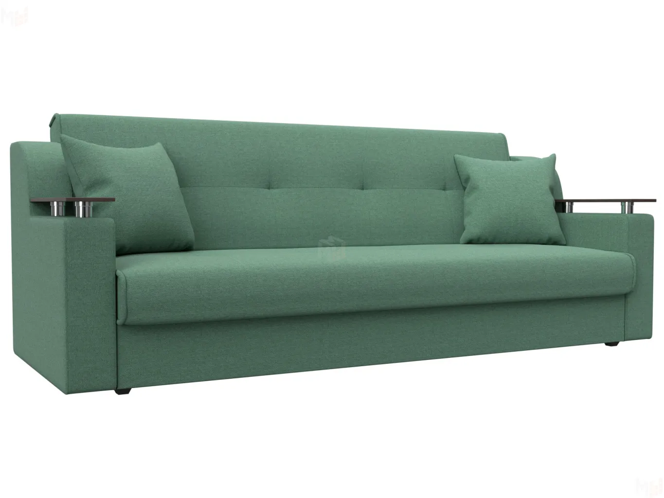 Сенатор – мягкий прямой диван с эргономичной спинкой и мини-столиками по бокам. Он устойчиво стоит на 4 пластиковых ножках, идеально гармонирующих с общим дизайном. Спинка прямая, без съемных подушек, подлокотники деревянные, выполняют роль столиков. Классический механизм «книжка» позволяет быстро трансформировать его в удобную двуспальную кровать. -