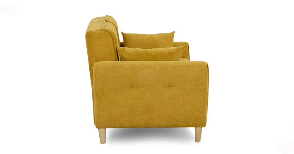 Мягкая спинка с имитацией приспинных подушек. Утяжки на передней и задней стороне спинки, на сиденье и подлокотниках.