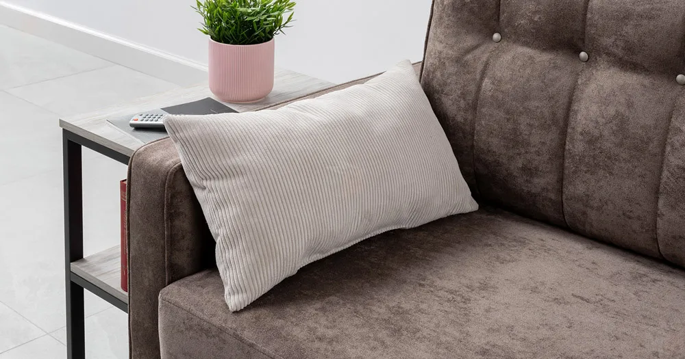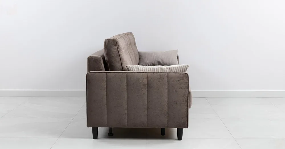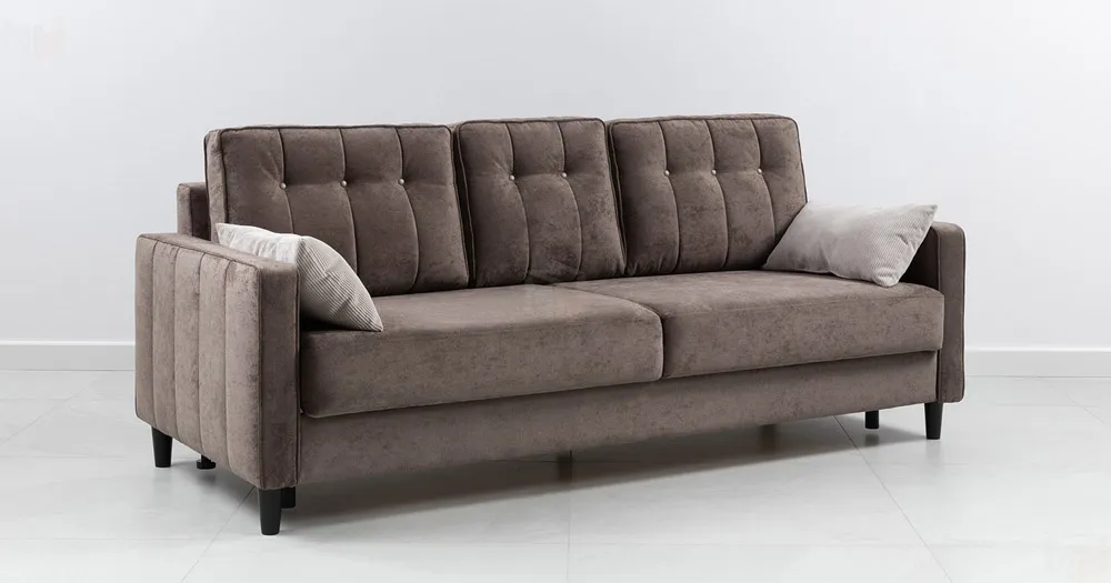 Подушки имеют трапециевидную форму, с утолщением к низу для комфорта посадки. Кант по всему периметру подушек, декоративные утяжки металлическими пуговицами, вертикальная стежка.