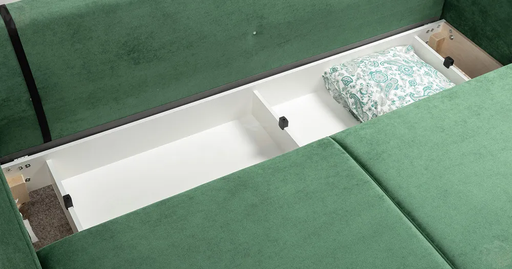Бельевой ящик есть с перегородкой по центру (2 отделения)
