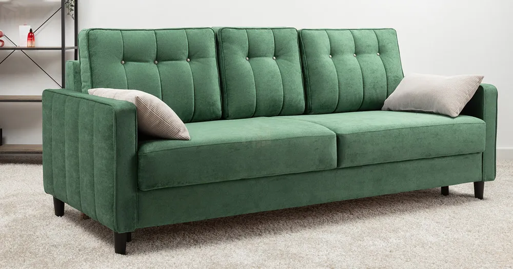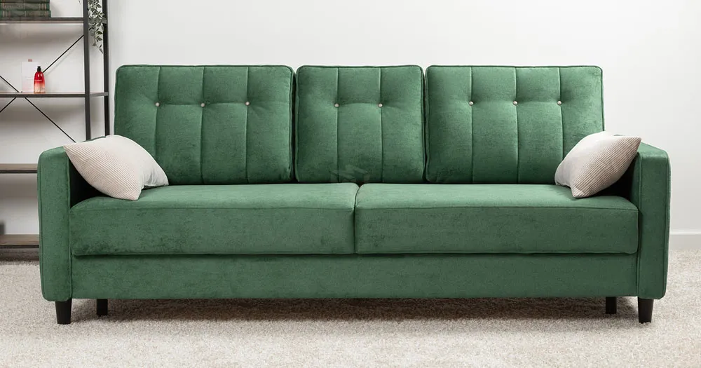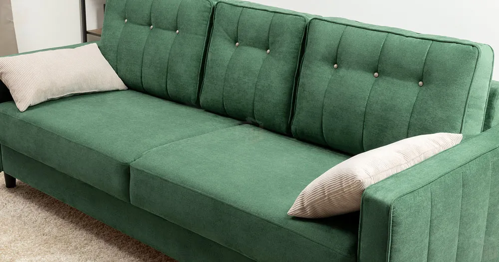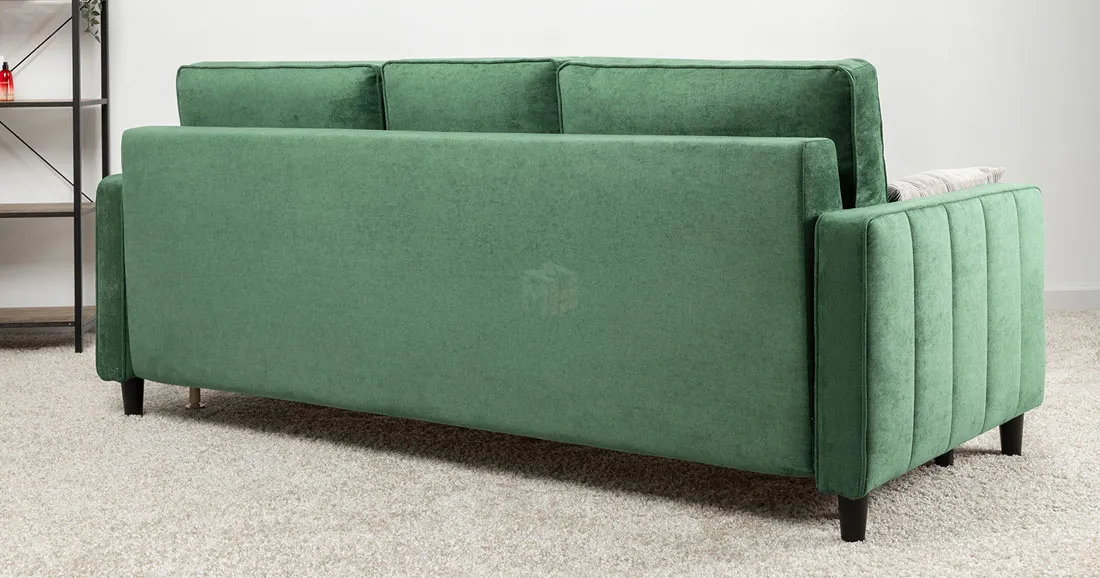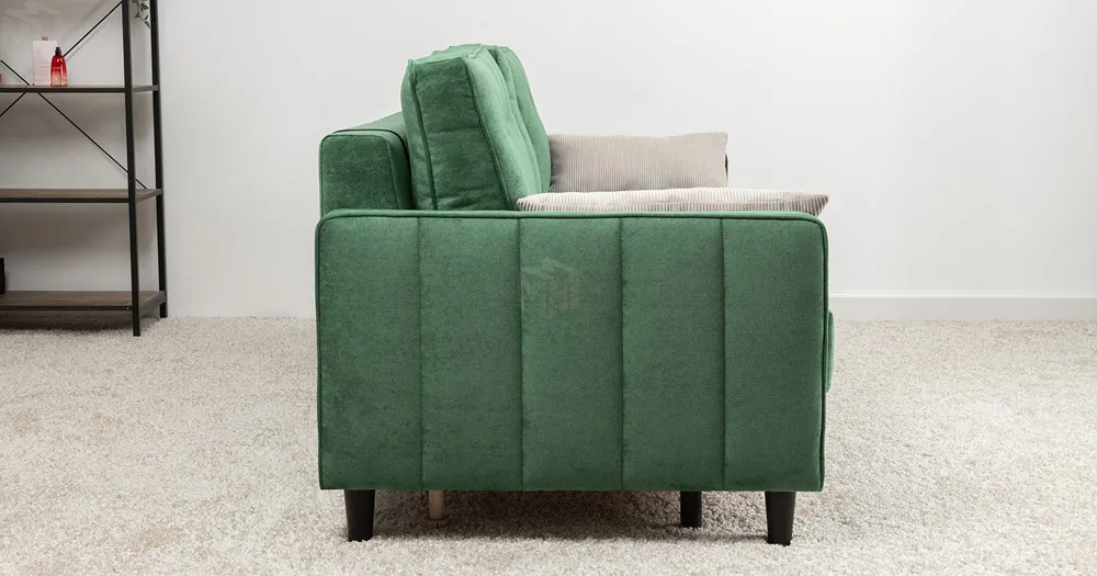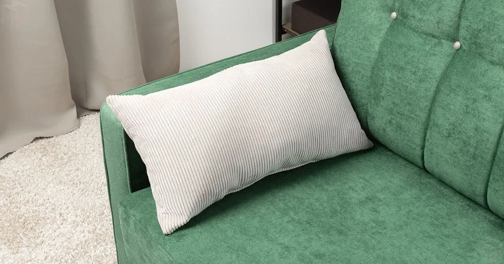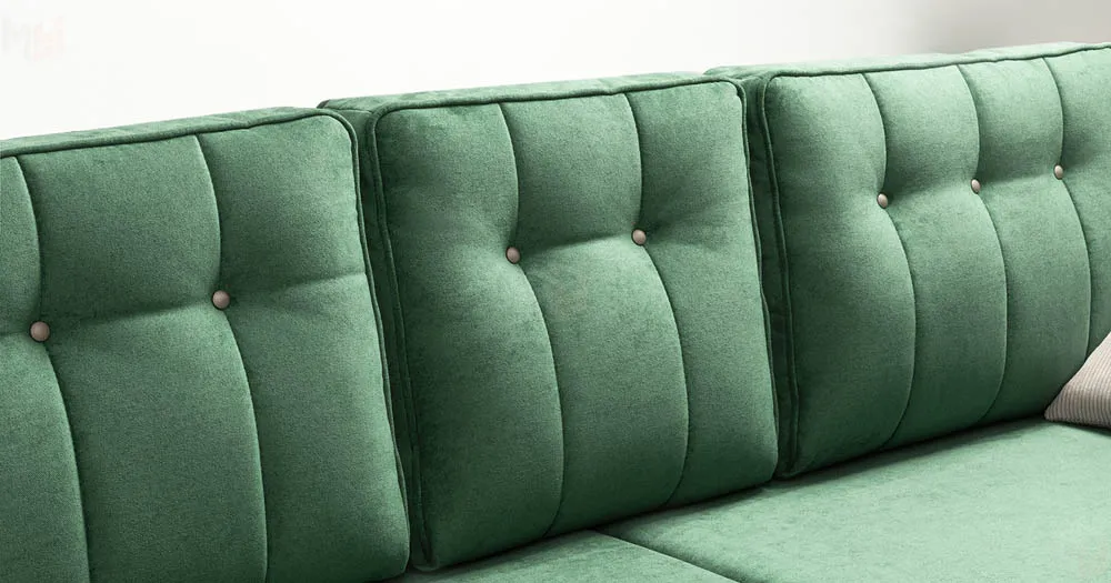 Подушки имеют трапециевидную форму, с утолщением к низу для комфорта посадки. Кант по всему периметру подушек, декоративные утяжки металлическими пуговицами, вертикальная стежка.