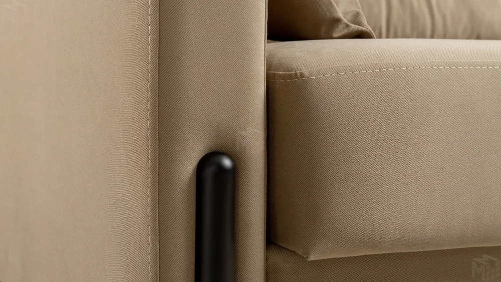 Металлические опоры плавно переходят в декоративный элемент подлокотника. Декоративная утяжка