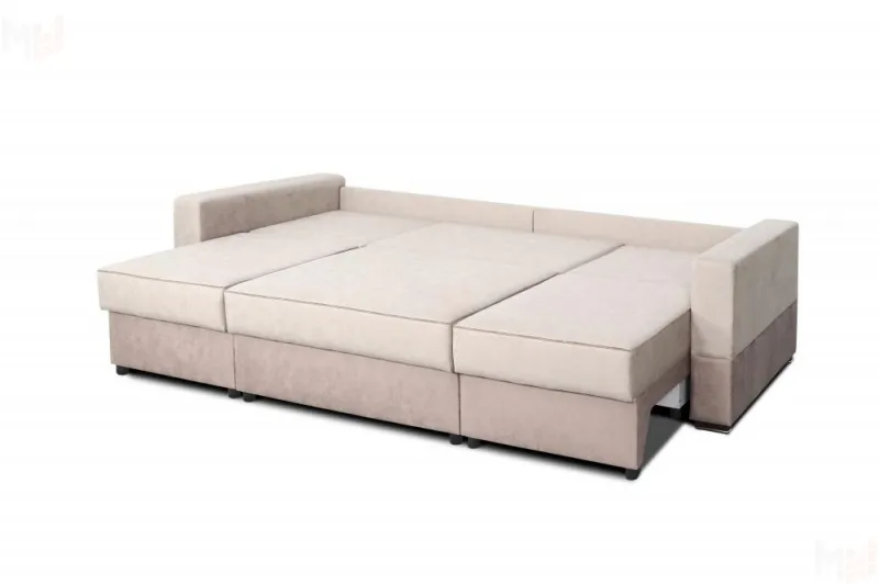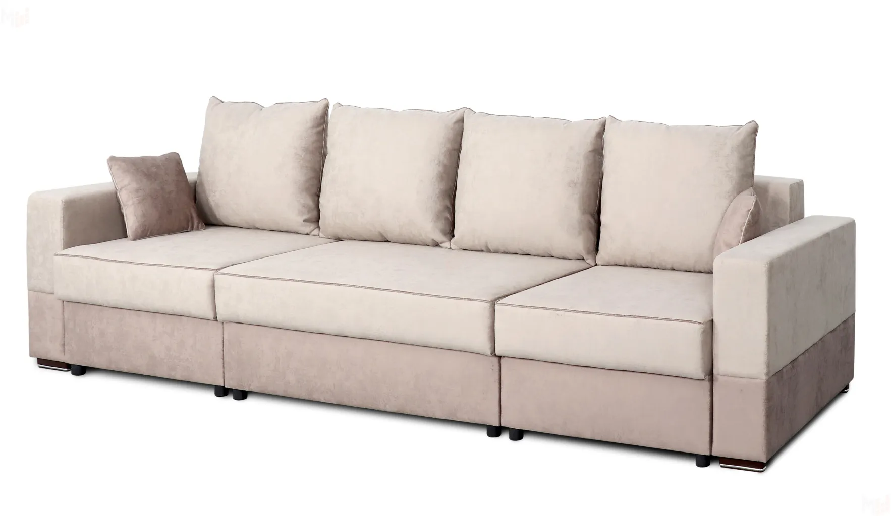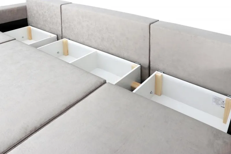 Приятно удивит наличие бельевых ящиков, в которых можно разместит немало вещей. В комплект входят шесть съемных подушек – четыре больших и две маленьких, сочетающихся с обивкой по цвету.