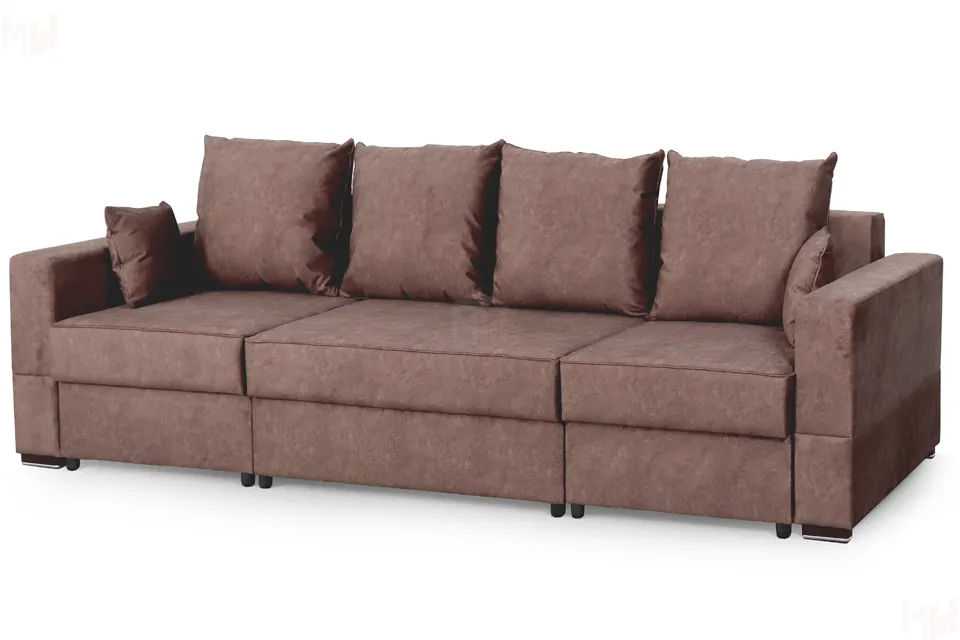 Приятно удивит наличие бельевых ящиков, в которых можно разместит немало вещей. В комплект входят шесть съемных подушек – четыре больших и две маленьких, сочетающихся с обивкой по цвету.