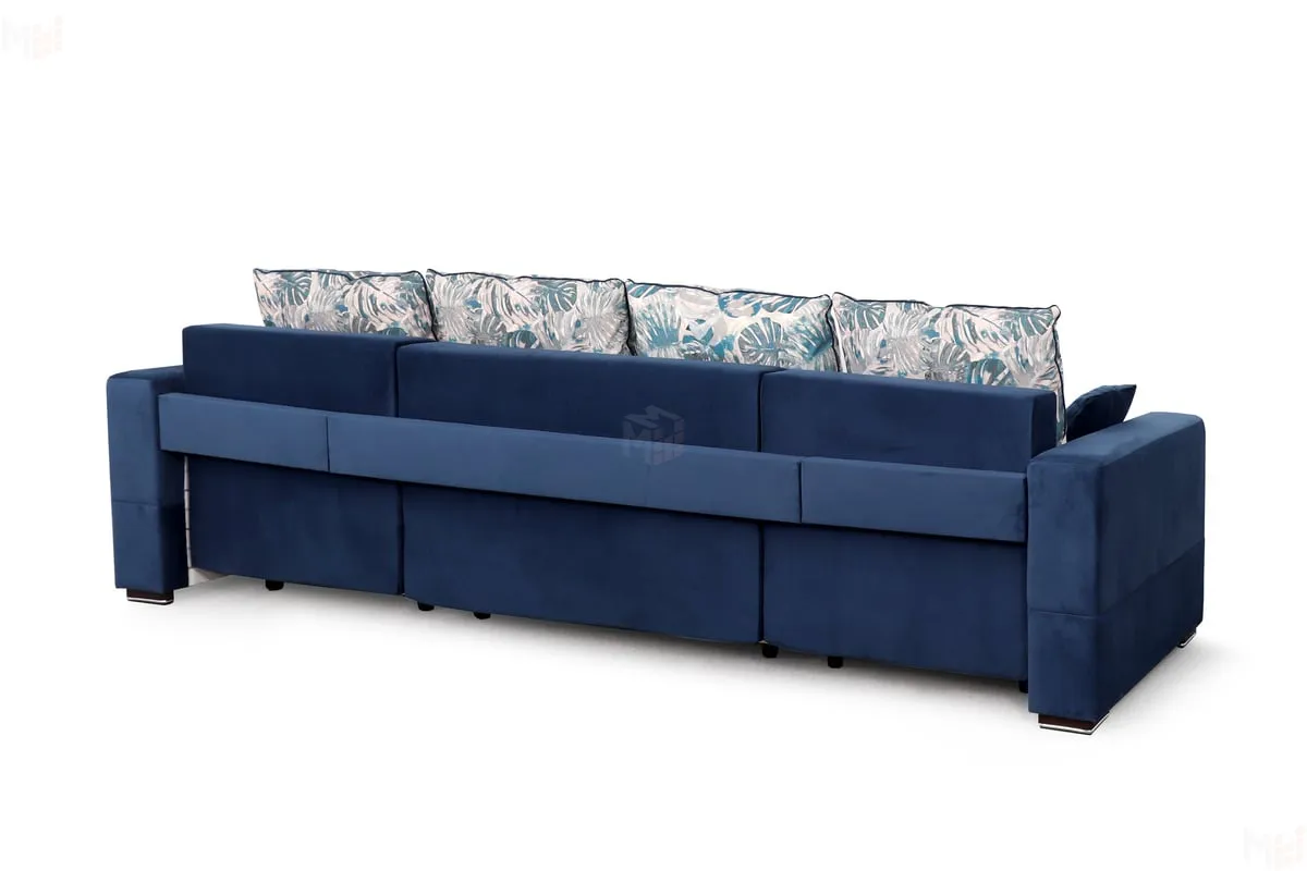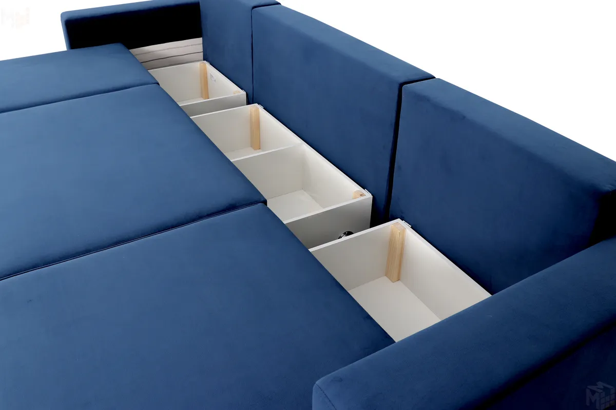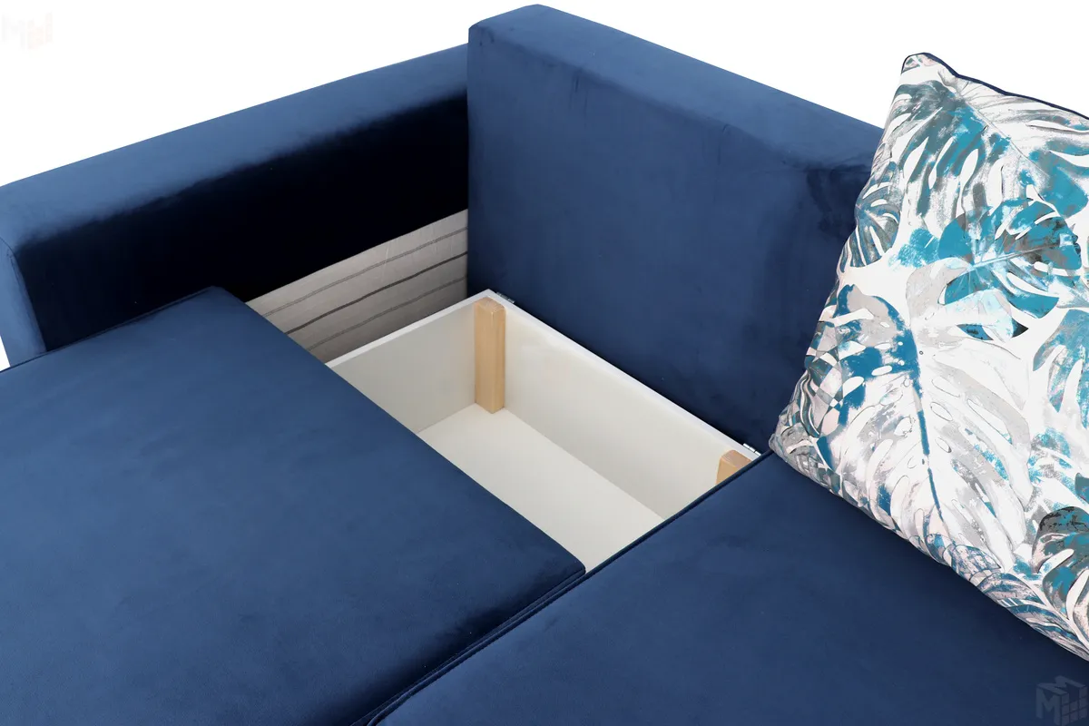 Приятно удивит наличие бельевых ящиков, в которых можно разместит немало вещей. В комплект входят шесть съемных подушек – четыре больших и две маленьких, сочетающихся с обивкой по цвету.