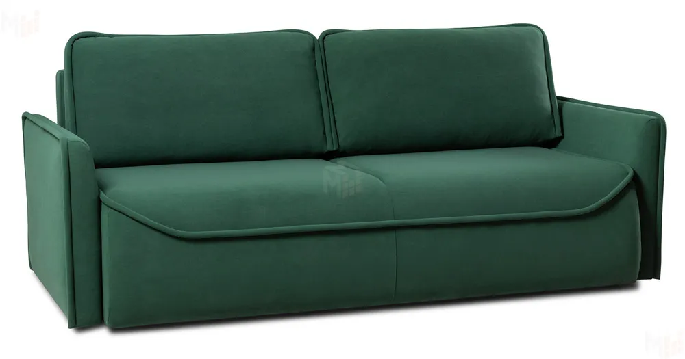Кант на подушках заведен назад, с лицевой стороны по верху переходит на тыльную сторону. Выкатной блок целиковый, с лицевой стороны разделяется мягким выраженным кантом, переменного уровня примерно 240 мм от низа сидения. Подлокотники утонченные с кантом смещенным наружу. Кант по всему периметру подлокотника..