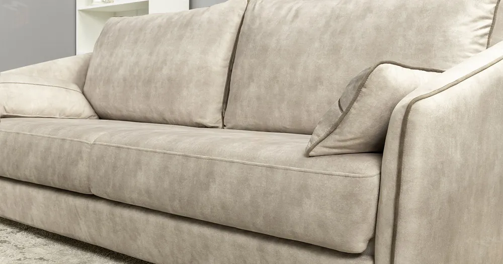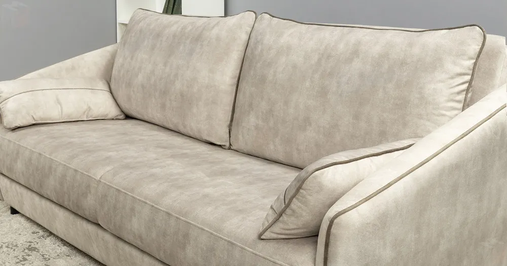 Подлокотники с выраженным контрастным кантом по внешнему контуру изделия. Декоративные подушки оформлены декоративной отстрочкой «зигзаг».