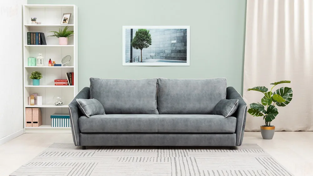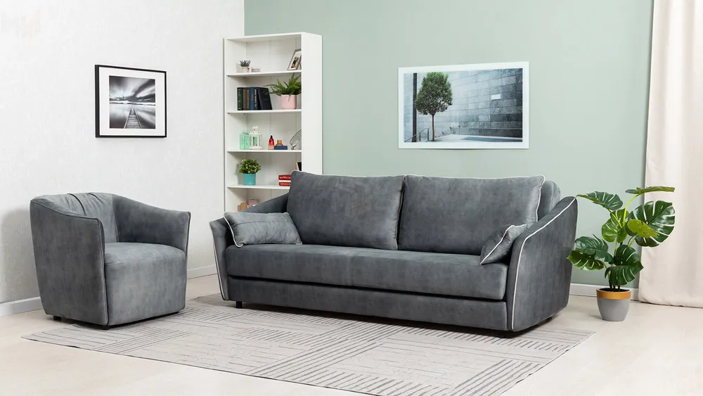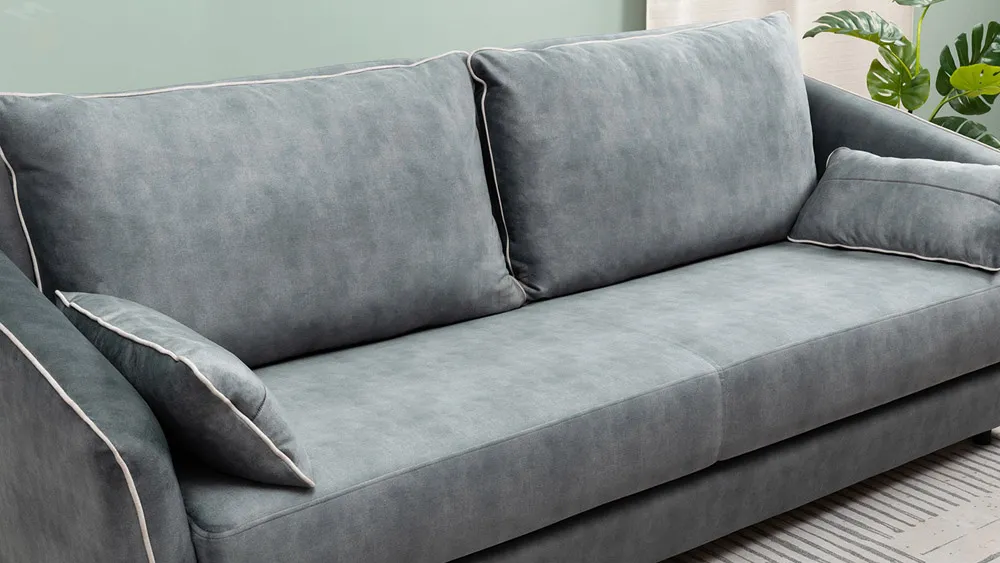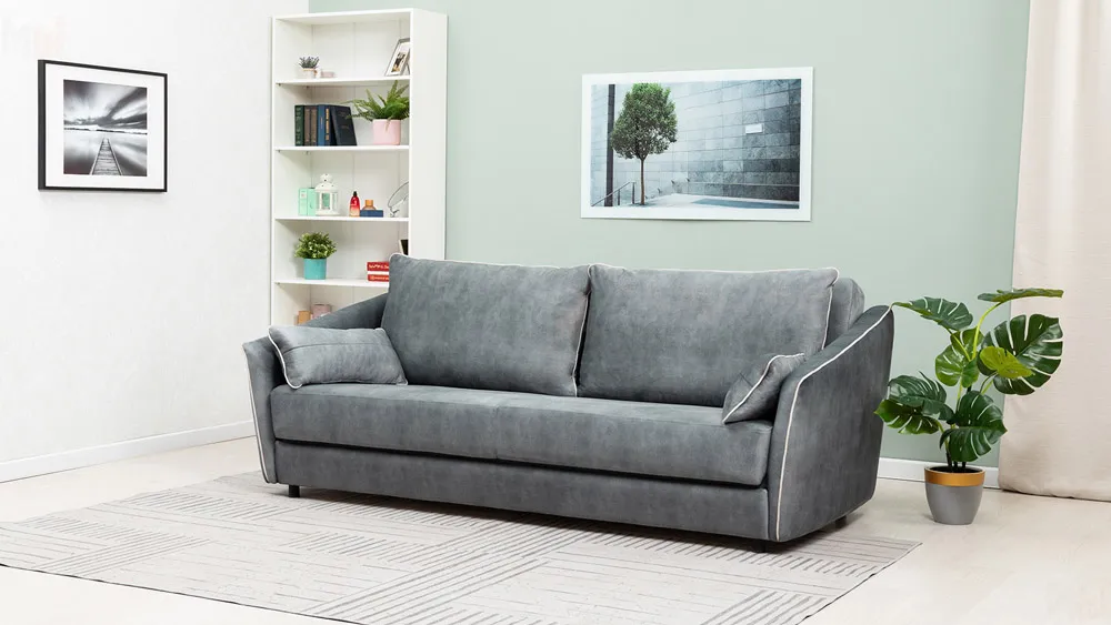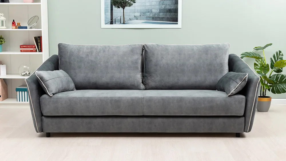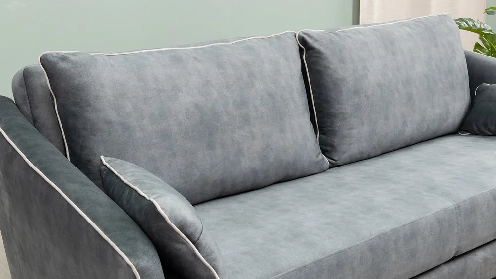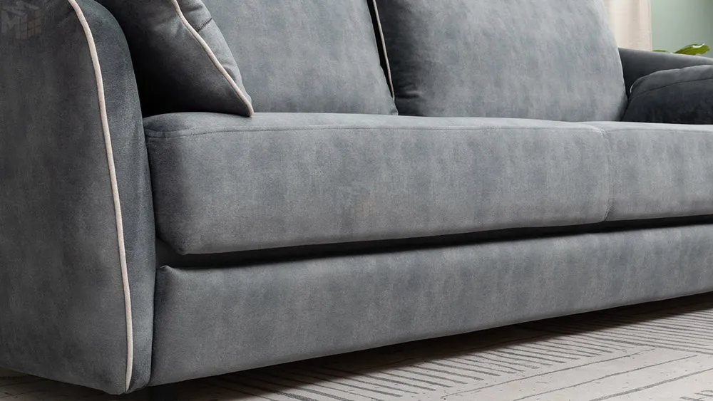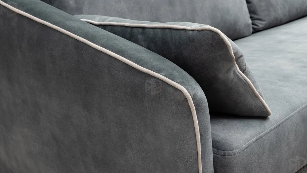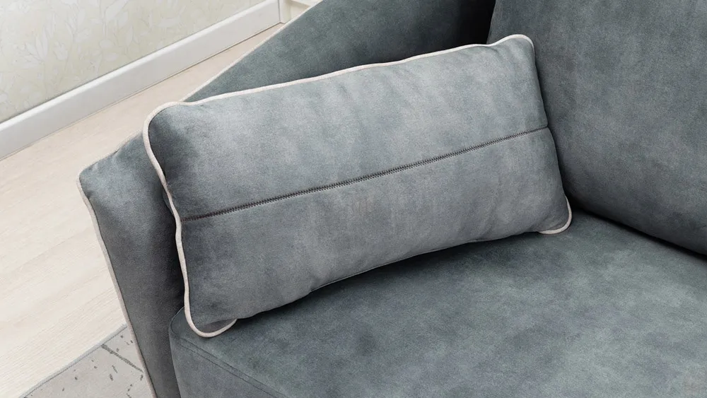 Подлокотники с выраженным контрастным кантом по внешнему контуру изделия. Декоративные подушки оформлены декоративной отстрочкой «зигзаг».