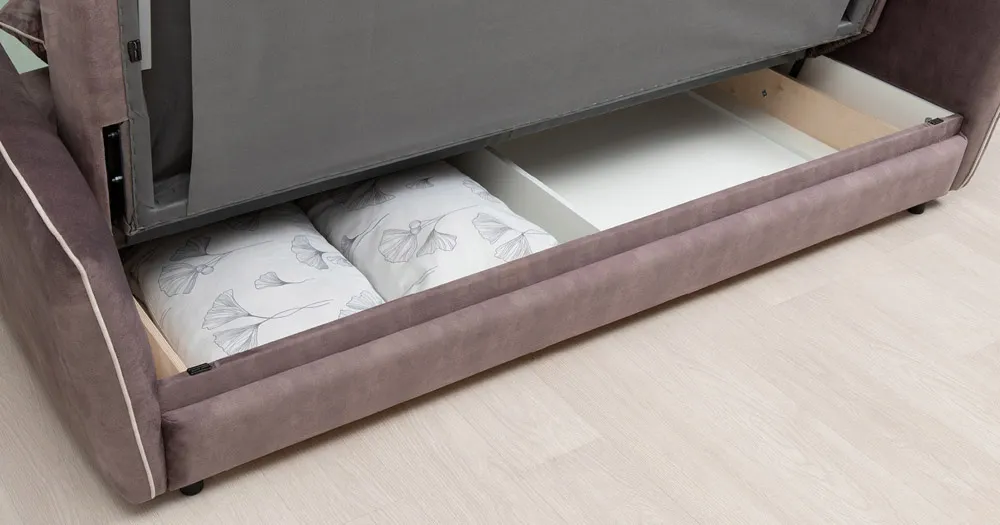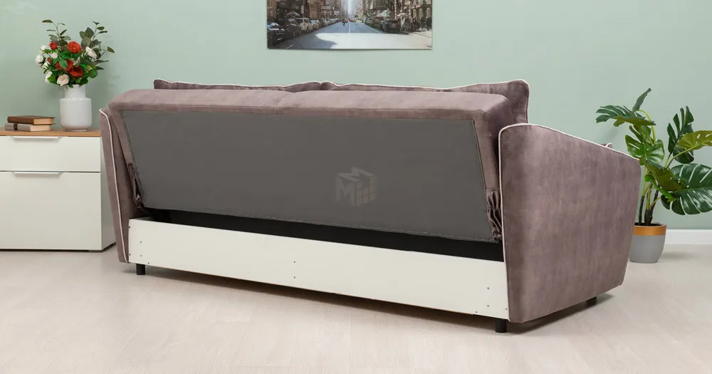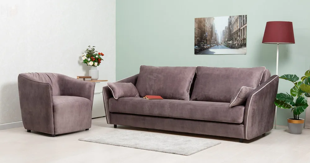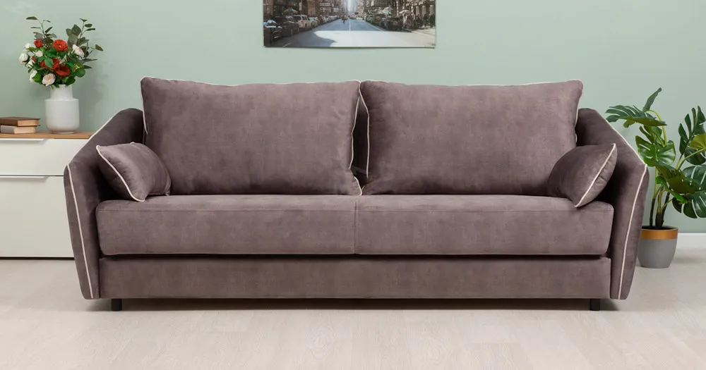 Подлокотники с выраженным контрастным кантом по внешнему контуру изделия. Декоративные подушки оформлены декоративной отстрочкой «зигзаг».