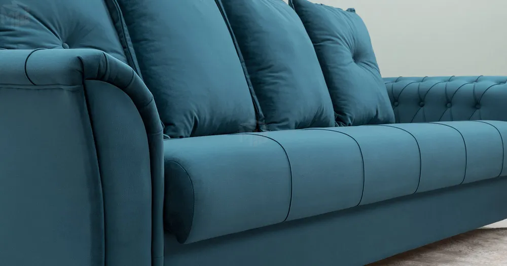 Декоративная отстрочка, защипы и утяжки на сиденье; защипы и утяжки с пуговицами на подлокотниках; утяжки с пуговицами на приспинных подушках