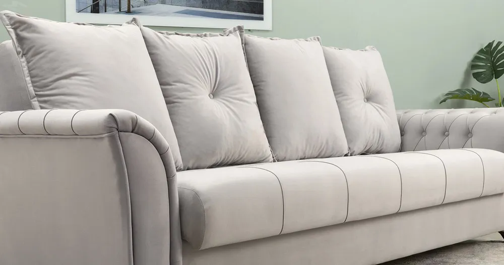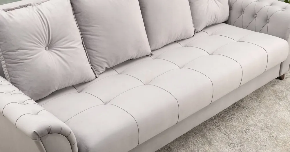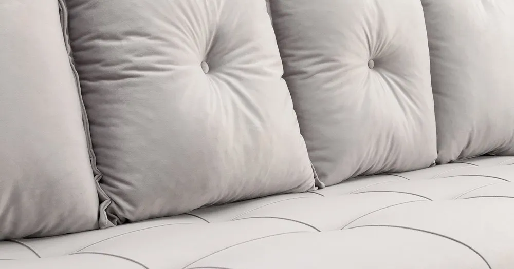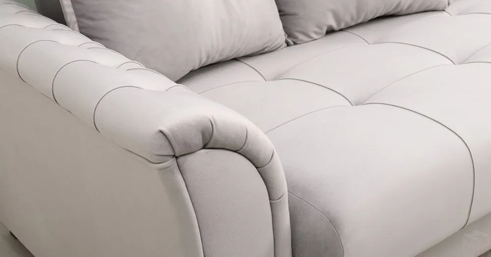 Декоративная отстрочка, защипы и утяжки на сиденье; защипы и утяжки с пуговицами на подлокотниках; утяжки с пуговицами на приспинных подушках