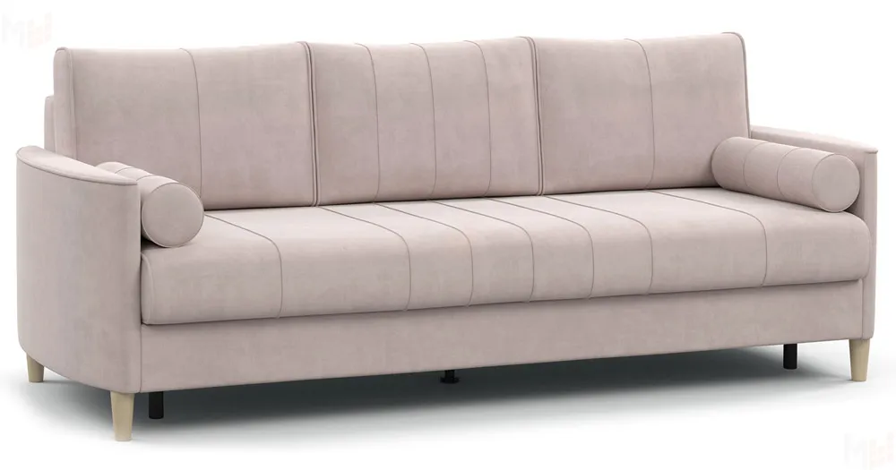 Кант на торцах приспинных подушек, сиденья и подлокотников. Защипы на сиденье и приспинных подушках. Две декоративные подушки-валика с защипами.