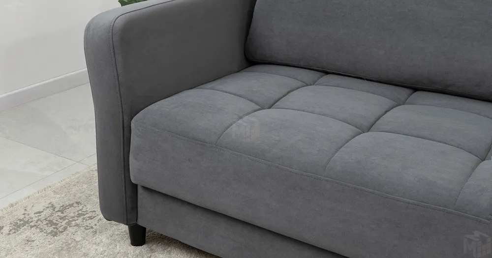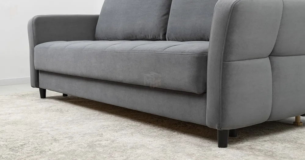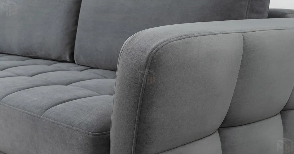 Ровная отстрочка по всему периметру сидения и стежка создающая эффект пышности выделенных форм. Подлокотники прямые с изгибом в наружные стороны, с выраженной стежкой по лицевой стороне. Стежка на посадочной части дивана.