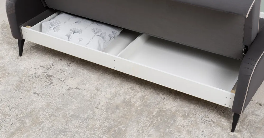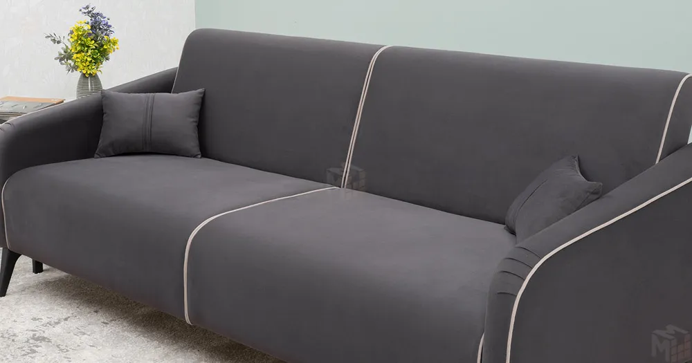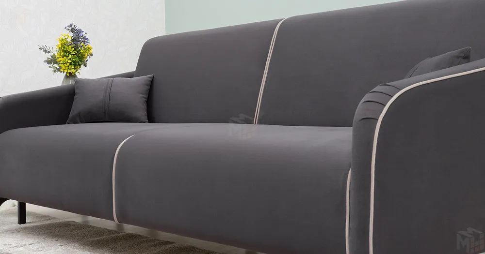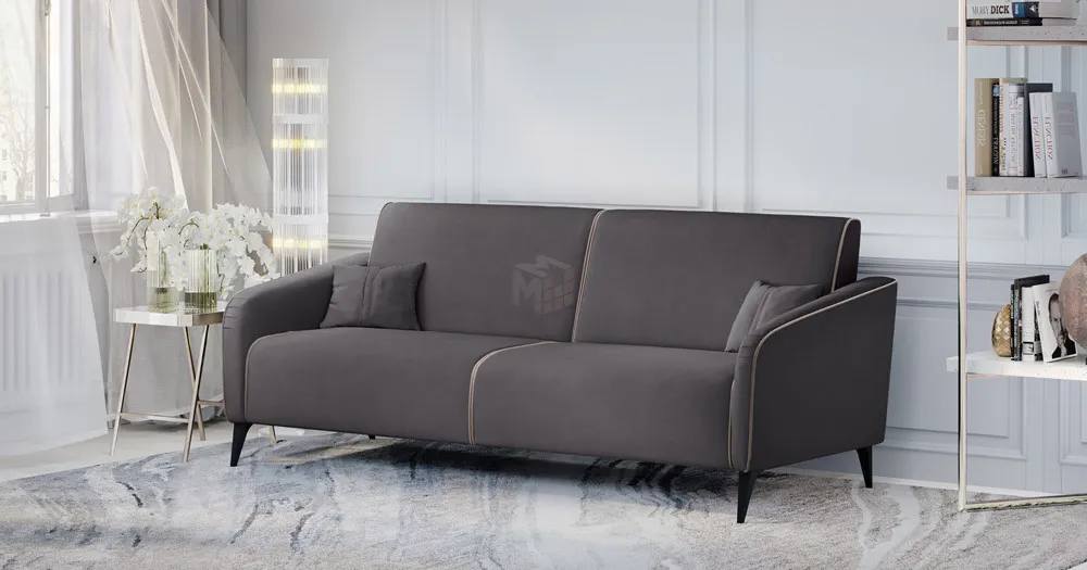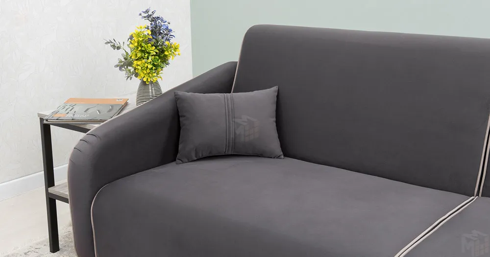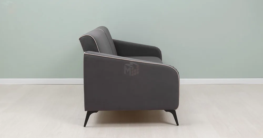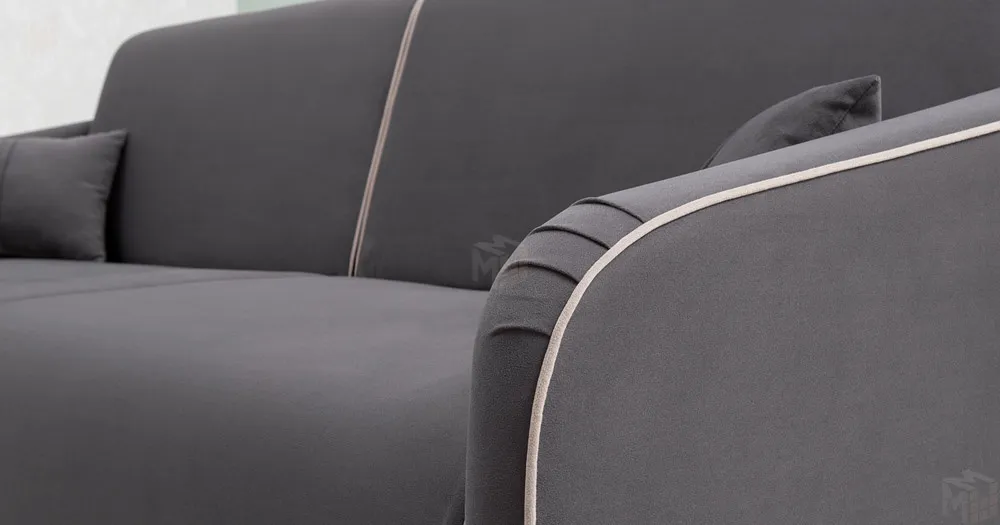 Спинка и сиденье разделяются пополам двойным кантом по центру и одинарным по краям сидения, для придания одной единой формы. Подлокотники с изгибом на лицевой стороне и мягкими закругленным углом со складками, с выраженным контрастным ровным кантом по внешнему контуру изделия и изогнутой линией канта.