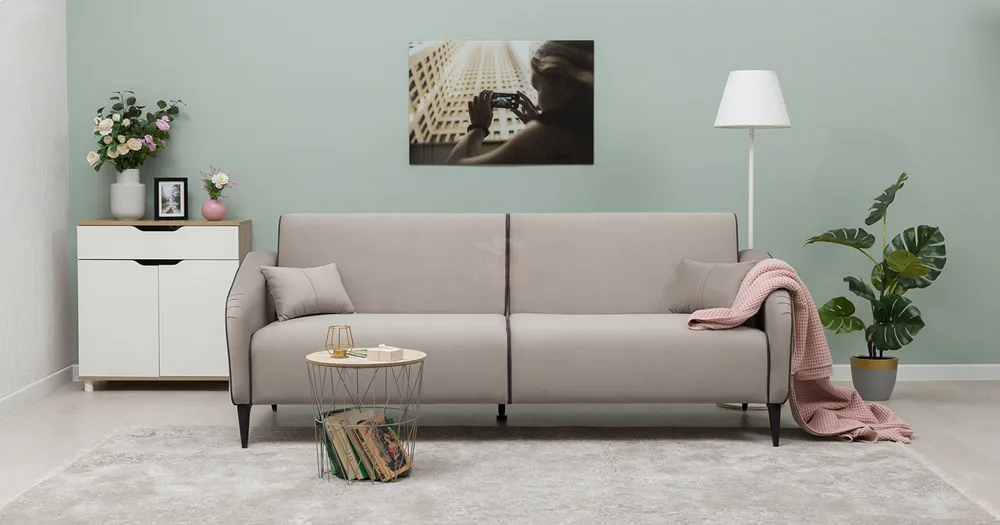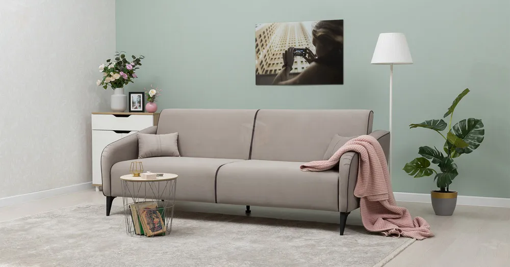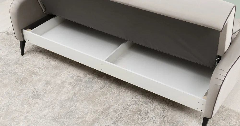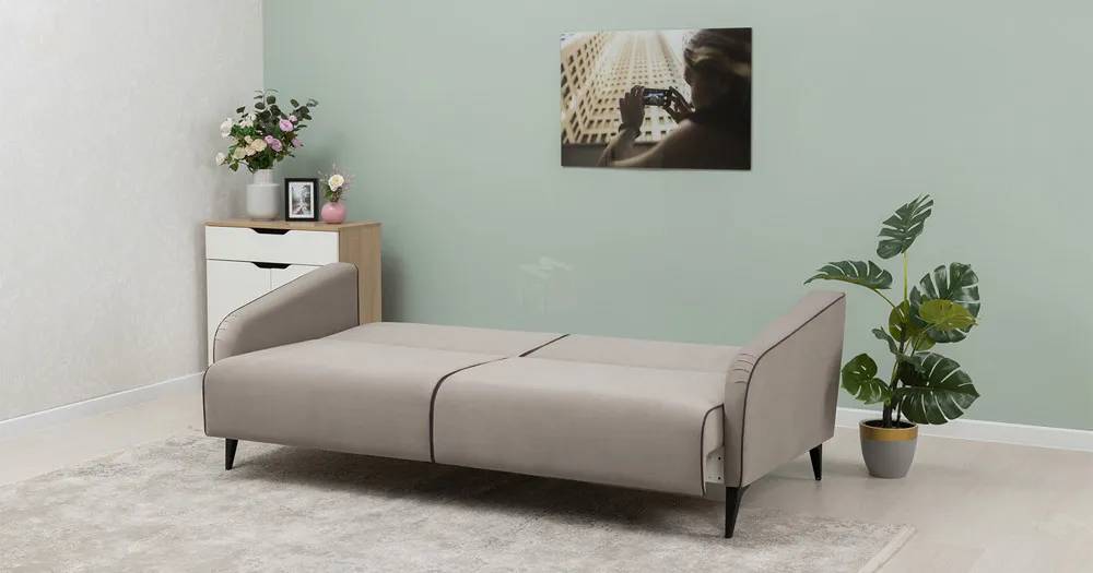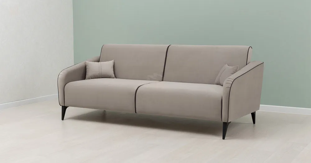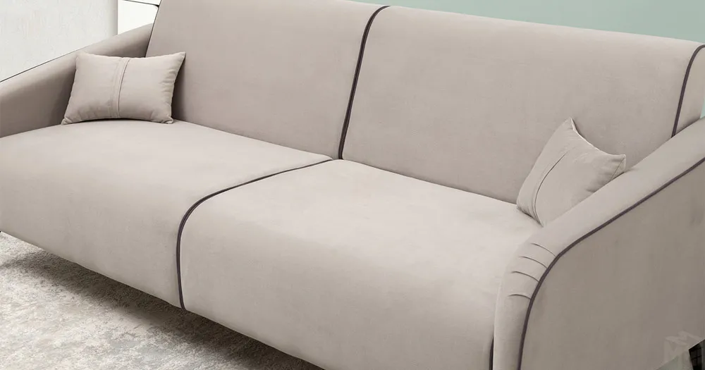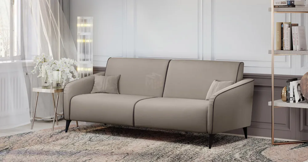 Спинка и сиденье разделяются пополам двойным кантом по центру и одинарным по краям сидения, для придания одной единой формы. Подлокотники с изгибом на лицевой стороне и мягкими закругленным углом со складками, с выраженным контрастным ровным кантом по внешнему контуру изделия и изогнутой линией канта.