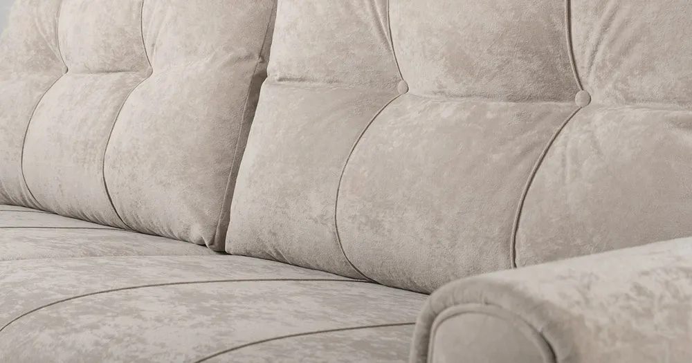 защипы на подушках и подлокотниках с утяжкой на 2 пуговицы из осн. материала, защипы на сидушке, декоративный кант на передних торцах подлокотников