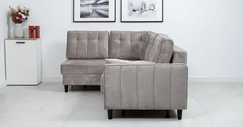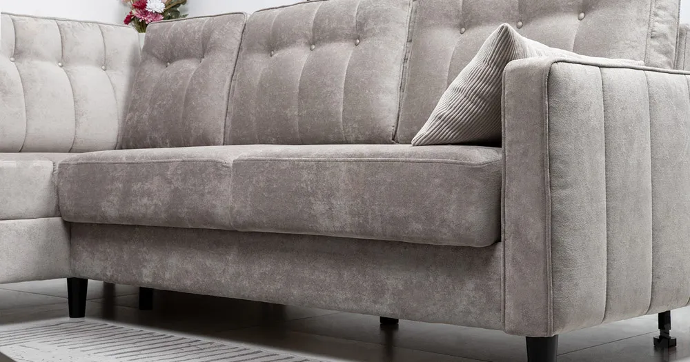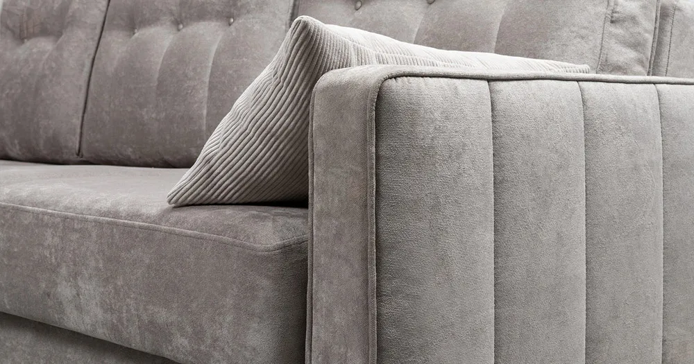 Подушки имеют трапециевидную форму, с утолщением к низу для комфорта посадки. Кант по всему периметру подушек, декоративные утяжки металлическими пуговицами, вертикальная стежка.