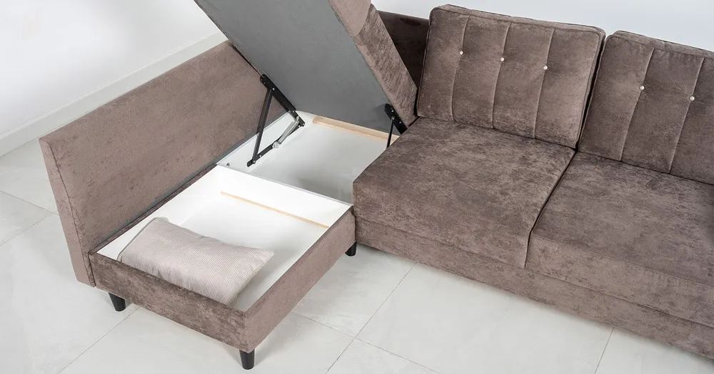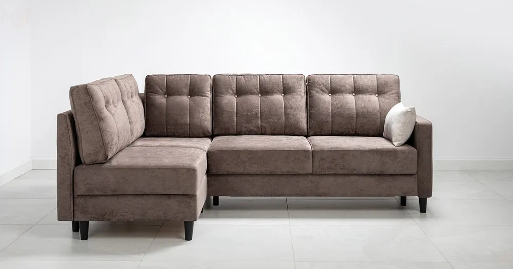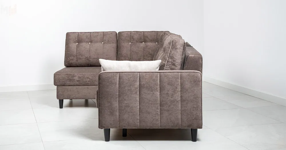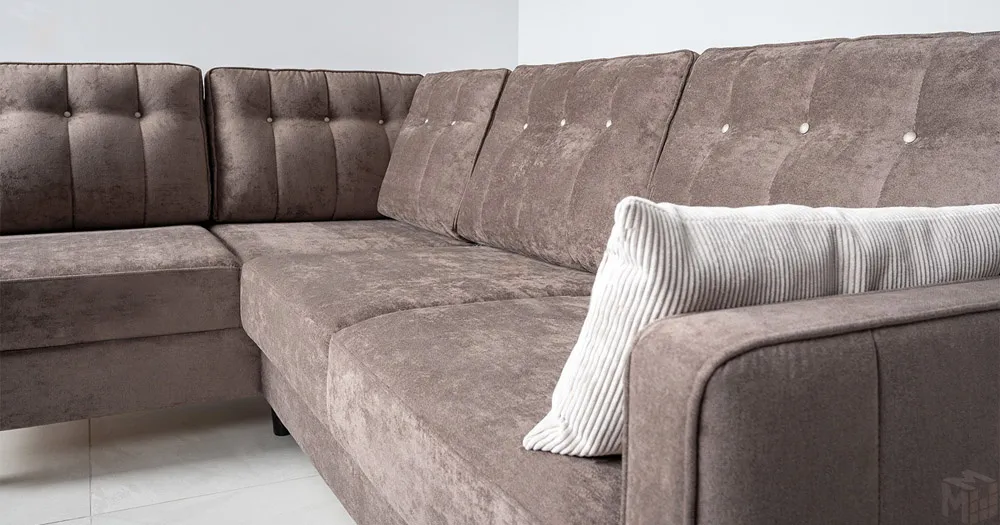 Подушки имеют трапециевидную форму, с утолщением к низу для комфорта посадки. Кант по всему периметру подушек, декоративные утяжки металлическими пуговицами, вертикальная стежка.