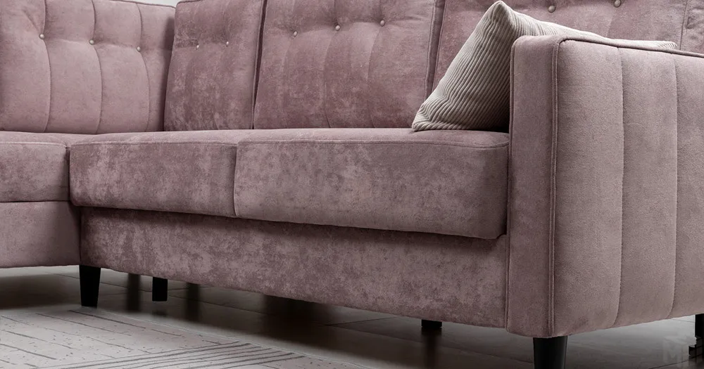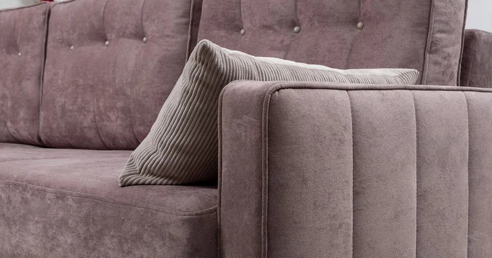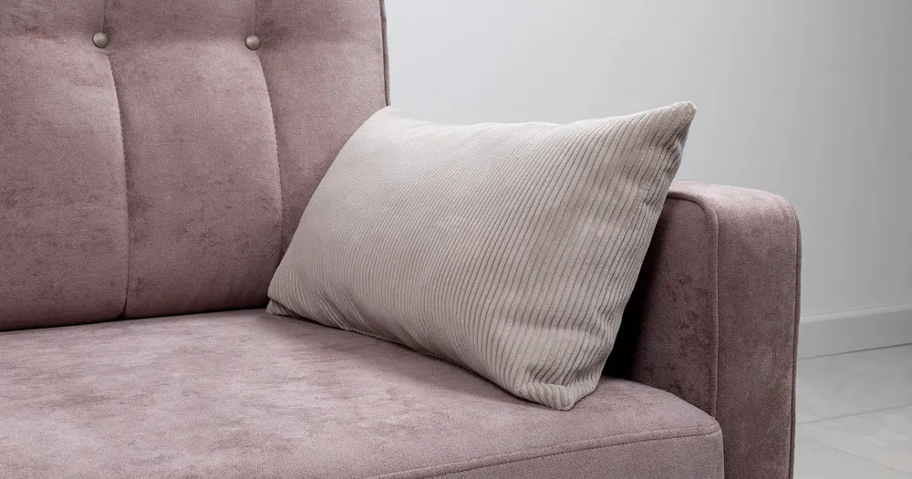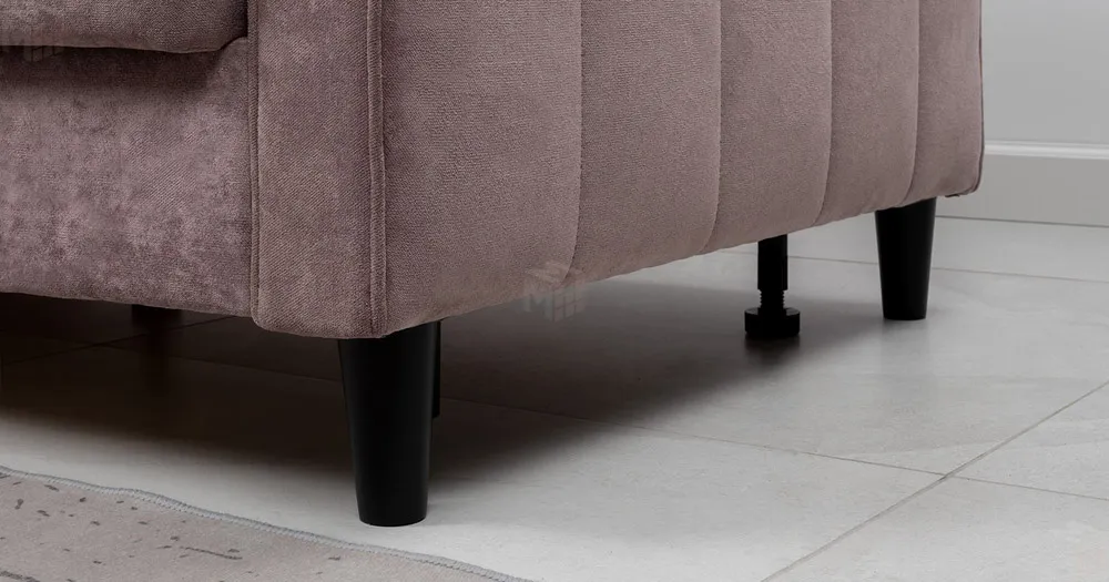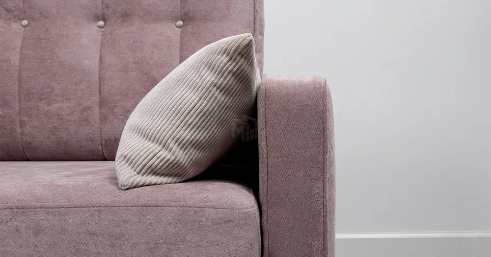 Подушки имеют трапециевидную форму, с утолщением к низу для комфорта посадки. Кант по всему периметру подушек, декоративные утяжки металлическими пуговицами, вертикальная стежка.