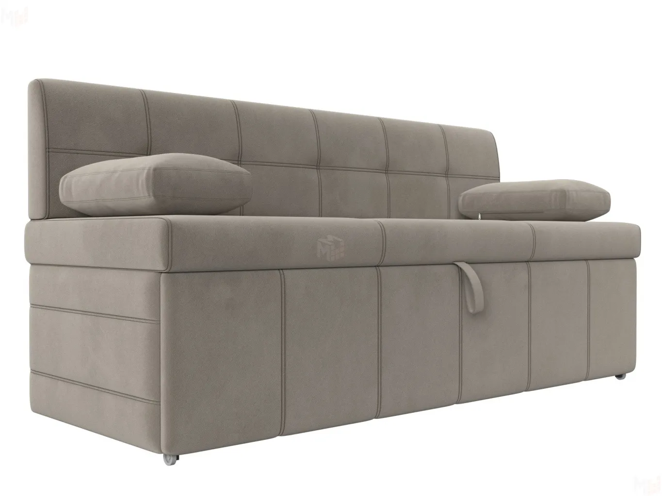 Лео – прямой диванчик для маленькой кухни, способный в считанные минуты превратиться в удобную односпальную кровать. Спинка высокая, прямая, подлокотники выполнены в форме подушек. Изделие не займет много места. Габариты минимальны.
