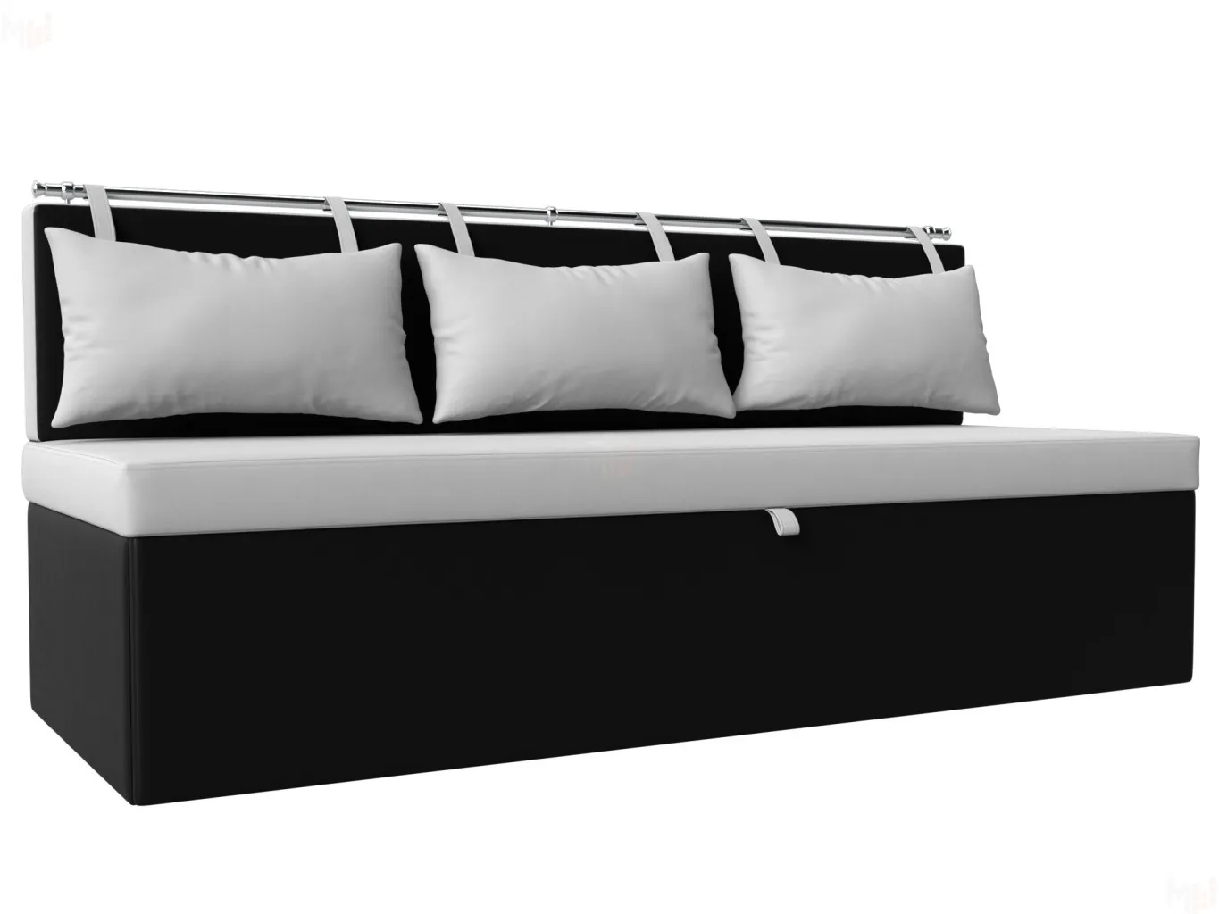 Прямой диван Метро станет необычным дополнением Вашей кухни. Сдержанный дизайн выглядит эстетично и аккуратно. Спинка дополняется съемными подушками, закрепленными на металлической трубе. Конструкция функциональна, легко трансформируется в односпальную кровать, устойчивость обеспечена благодаря ножкам из поликарбоната высокого качества. -