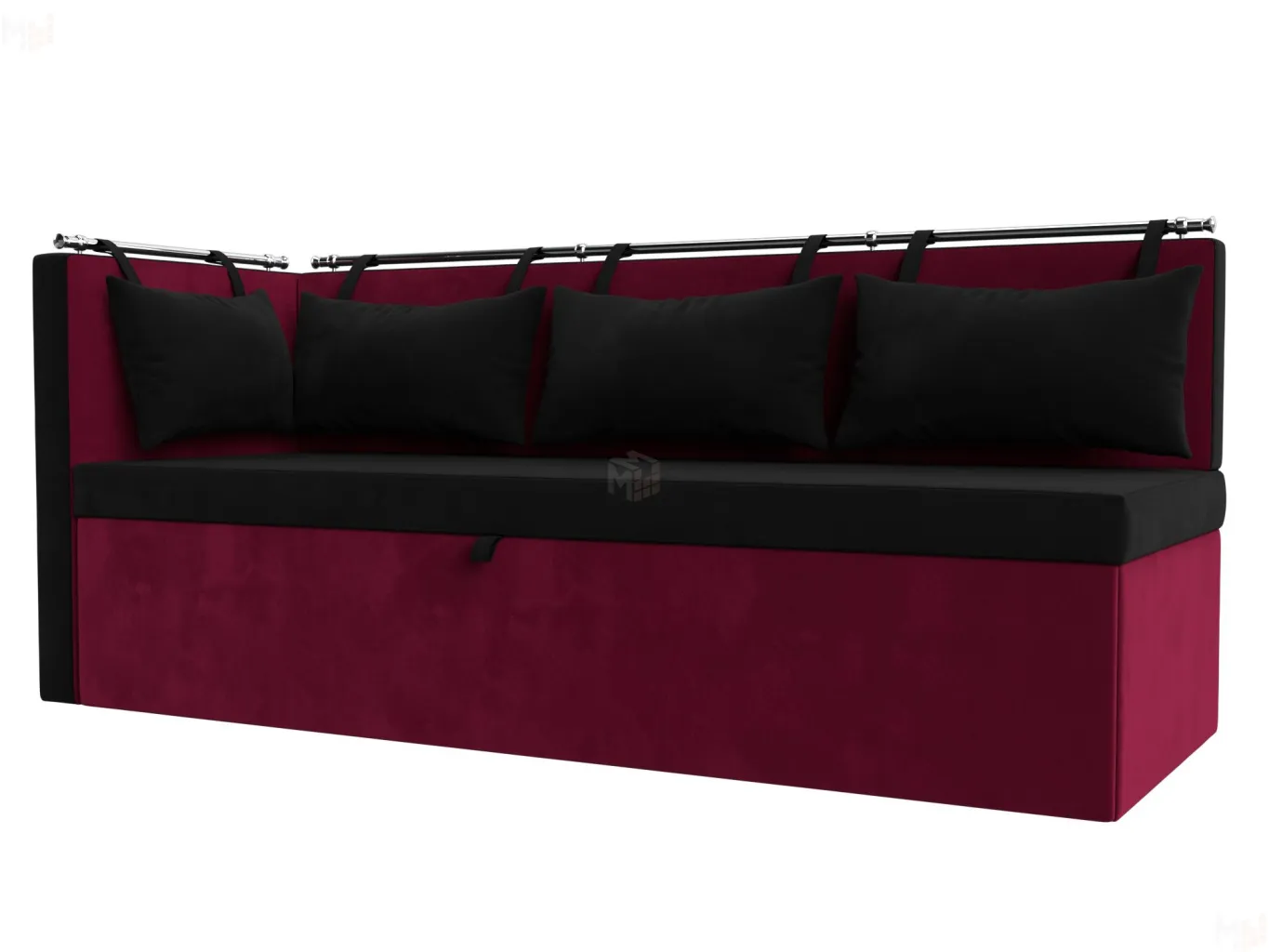 Метро – элегантный угловой диван с компактными параметрами. Для его размещения не потребуется много места. По дизайну схож со скамьей, дополненной небольшим углом. Обратите внимание на спинку, она украшена мягкими подушками с петельками, закрепленными на металлической трубе. Модель устойчива благодаря прочным пластиковым ножкам. -