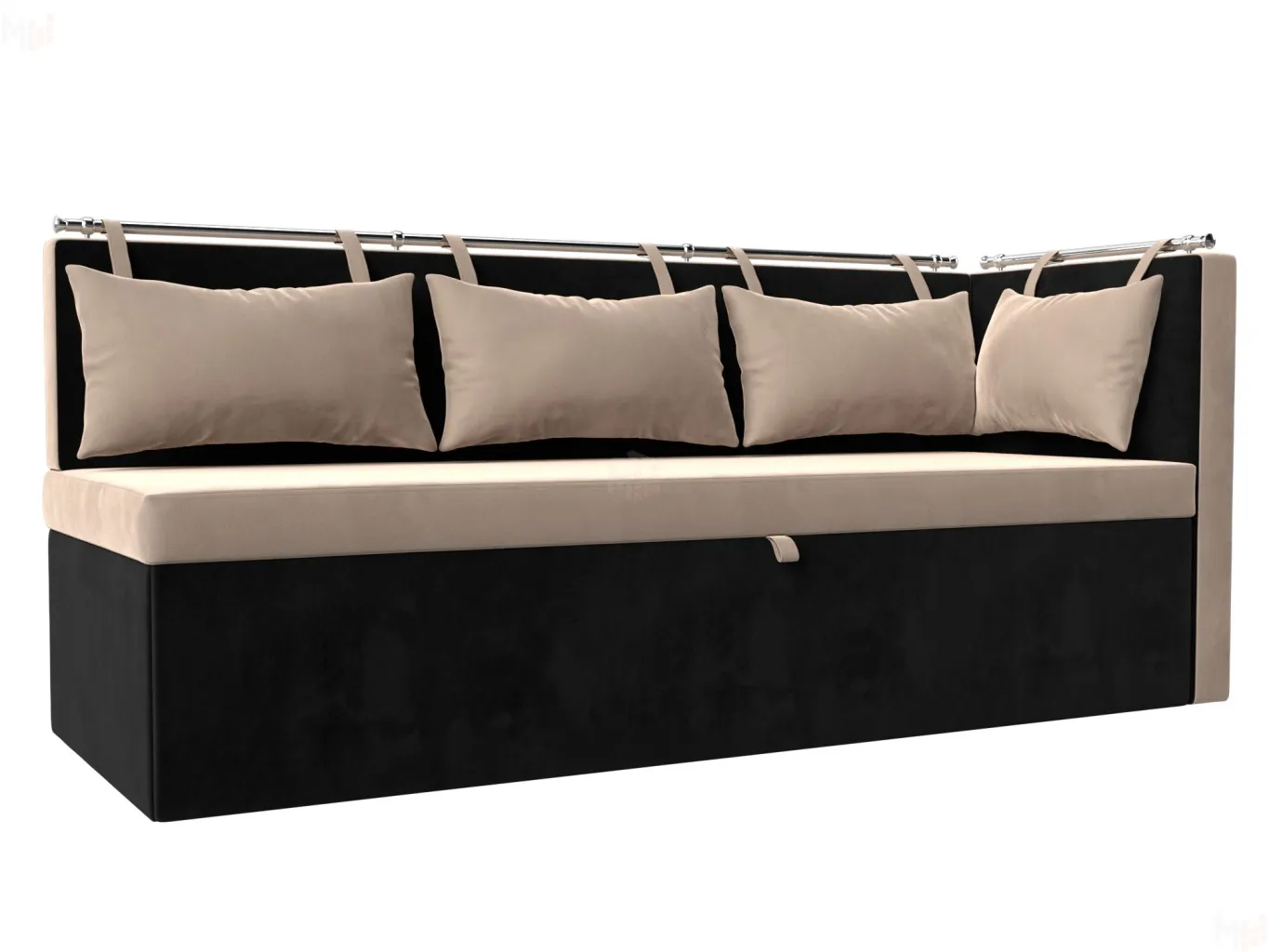 Метро – элегантный угловой диван с компактными параметрами. Для его размещения не потребуется много места. По дизайну схож со скамьей, дополненной небольшим углом. Обратите внимание на спинку, она украшена мягкими подушками с петельками, закрепленными на металлической трубе. Модель устойчива благодаря прочным пластиковым ножкам. -