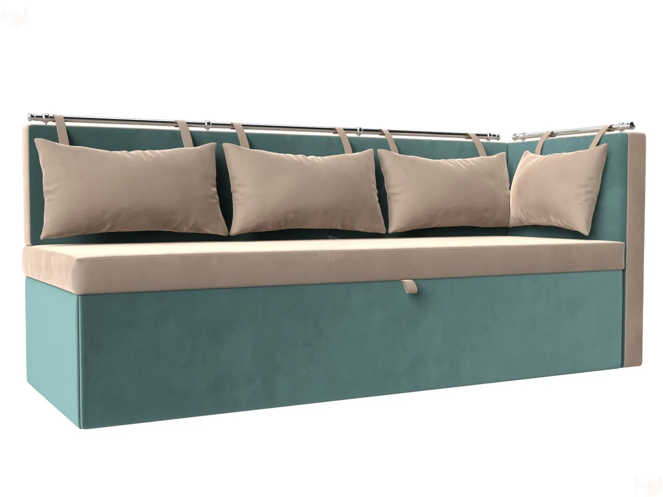 Метро – элегантный угловой диван с компактными параметрами. Для его размещения не потребуется много места. По дизайну схож со скамьей, дополненной небольшим углом. Обратите внимание на спинку, она украшена мягкими подушками с петельками, закрепленными на металлической трубе. Модель устойчива благодаря прочным пластиковым ножкам. -