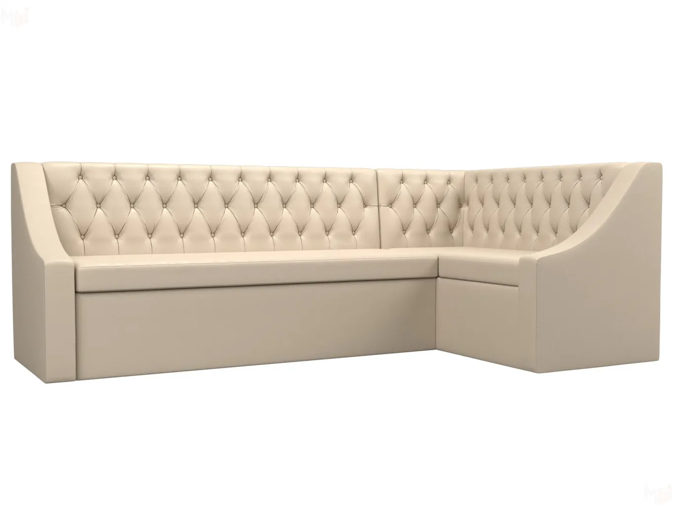 Мерлин – угловой кухонный диван хорошего качества по доступной цене. Он отлично подойдет для дополнения кухни в малогабаритной квартире. Высокая спинка, украшенная каретной стяжкой, снимет напряжение с позвоночника. Подлокотники помогут расслабить руки. Сиденье легко превращается в полноценную кровать. Дополнительную выгоду обеспечивает вместительный ящик размером 117х35х57 см под угловым сиденьем.