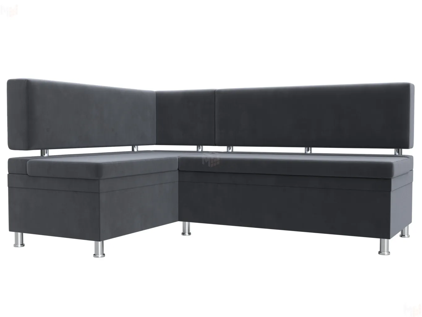 Стайл – универсальный угловой диван для кафе или кухни. Спинка и сиденья модели прямые. Элегантность дизайна подчеркивается высокими металлическими ножками и декоративными трубами, расположенными под спинкой. -