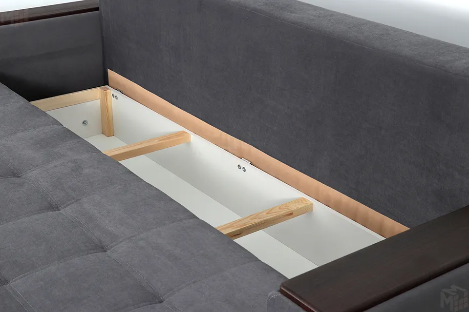 Это очень практичный вариант и в случае каждодневной необходимости трансформации дивана, и в случае необходимости размещения гостей. Наполнителями дивана являются пружинный блок типа «Боннель», термовойлок, пенополиуретан.